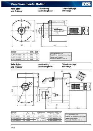 28,8 ø110 70 ø4850 ød1232ø40 ø24 ø25 ø25 Precision meets Motion Axial Bohr- Axial drilling Tête de perçage und Fräskopf and milling head et fraisage 62 83 Bestell NrOrder No. i ød nmax[1/min]Tmax[Nm] Innere Kühlmittelzufuhr: 40.2516 WN G200 1:1 16 6000 16 Zusatz IK an Bestellnummer anfügen. 40.2512 WN G200 1:1 12 6000 16 Central cooling supply: 40.2510 WN G200 1:1 10 6000 16 Please add IK behind order no. Axial Bohr- Axial drilling Tête de perçage und Fräskopf and milling head et fraisage 50 i i= =N1E:15:W3S 55 71 80 58,5 Bestell NrOrder No. i nmax Tmax[1/min][Nm]SchlüsselsatzSpannzange (siehe 1.27)Wrench-setCollet (see 1.27)Innere Kühlmittelzufuhr: 50.2516 G200/1 1:2 12000 8 LS16/HS40 RD/ER 16 426E (1-10) Zusatz IK an Bestellnummer anfügen. 40.2516 G200/13 1:3 15000 6 Maße auf Anfrage RD/ER 16 426E (1-10) Central cooling supply: 40.2516 G200/15 1:5 25000 4 Dim. on request RD/ER 16 426E (1-10) Please add IK behind order no. 4.70.2