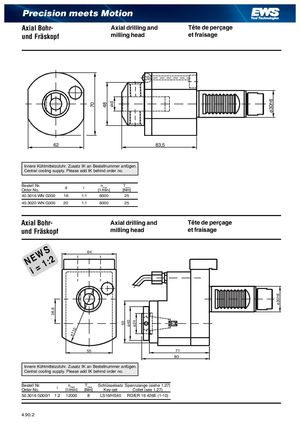 28,8 ø110 70 48 ød 50 ø40 ø24 ø30h6 ø30h6 Precision meets Motion Axial Bohr- Axial drilling and Tête de perçage und Fräskopf milling head et fraisage 62 83,5 Innere Kühlmittelzufuhr. Zusatz IK an Bestellnummer anfügen. Central cooling supply. Please add IK behind order no. Bestell Nr.Order No. d i nmax Tmax[1/min][Nm] 40.3016 WN G300 16 1:1 6000 25 40.3020 WN G300 20 1:1 6000 25 Axial Bohr- Axial drilling and Tête de perçage und Fräskopf milling head et fraisage N iE=W1S: 2 64 55 71 80 Innere Kühlmittelzufuhr. Zusatz IK an Bestellnummer anfügen. Central cooling supply. Please add IK behind order no. Bestell Nr.Order No. i nmax Tmax Schlüsselsatz Spannzange (siehe 1.27)[1/min][Nm]Key-setCollet (see 1.27) 50.3016 G300/1 1:2 12000 8 LS16/HS40 RD/ER 16 426E (1-10) 4.90. 2