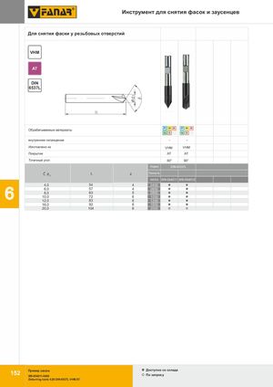 WK Инструмент для снятия фасок и заусенцев Для снятия фаски у резьбовых отверстий VHM AT DIN 6537L P M K P M K Обрабатываемые материалы N S H N S H внутреннее охлаждение IK- - Изготовлено из VHM VHM Покрытие AT AT NТоaчkеróчjн/ыCйhуaгmолfer V6H0M° 90° Норма DIN-6537L Ć d1 l1 z Точность INDEX W9-054011 W9-054012 4,0 54 4 0400 6,0 57 4 0600 6 8,010,0 6372 5 080061000 12,0 83 6 1200 16,0 92 6 1600 20,0 104 6 2000 7 Пример заказа Доступнo со склада 152 W9-054011-0400 По запросу Deburring tools 4,00 DIN-6537L VHM AT