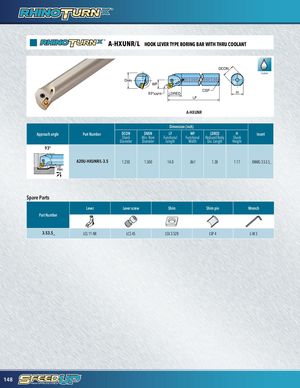 A-HXUNR/L HOOK LEVER TYPE BORING BAR WITH THRU COOLANT DCON Coolant DMIN WF 93°KAPR LDRED CSP H LF DCON A-HXUNR WF 93° LH H Dimension (inch) Approach angle LF Part Number DCON DMIN LF WF LDRED H Insert Shank Min. Bore Functional Functional Reduced Body Shank Diameter Diameter Length 1mW5ai°dx.th Dia. Length Height 93° A20U-HXUNR/L-3.5 1.250 1.500 14.0 .861 1.38 1.17 XNMG 3.53.5_ 1m5a°x. Spare Parts Lever Lever screw Shim Shim pin Wrench Part Number 3.53.5_ LCL 11-NX LCS 4S LSX 3.52B LSP 4 L-W 3 148