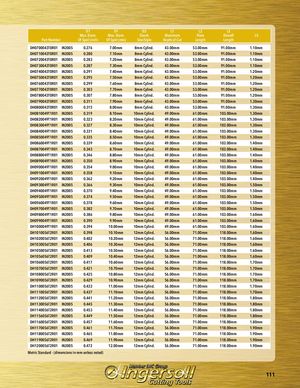D1 D1 D2 L1 L2 L3 Max. Diam. Max. Diam. Shank Maximum Flute Overall L5 Part Number Of Spot (inch) Of Spot (mm) Size/Style Depth of Cut Length Length DH0700043T0R01 IN2005 0.276 7.00mm 8mm Cylind. 43.00mm 53.00mm 91.00mm 1.10mm DH0710043T0R01 IN2005 0.280 7.10mm 8mm Cylind. 43.00mm 53.00mm 91.00mm 1.10mm DH0720043T0R01 IN2005 0.283 7.20mm 8mm Cylind. 43.00mm 53.00mm 91.00mm 1.10mm DH0730043T0R01 IN2005 0.287 7.30mm 8mm Cylind. 43.00mm 53.00mm 91.00mm 1.10mm DH0740043T0R01 IN2005 0.291 7.40mm 8mm Cylind. 43.00mm 53.00mm 91.00mm 1.20mm DH0750043T0R01 IN2005 0.295 7.50mm 8mm Cylind. 43.00mm 53.00mm 91.00mm 1.20mm DH0760043T0R01 IN2005 0.299 7.60mm 8mm Cylind. 43.00mm 53.00mm 91.00mm 1.20mm DH0770043T0R01 IN2005 0.303 7.70mm 8mm Cylind. 43.00mm 53.00mm 91.00mm 1.20mm DH0780043T0R01 IN2005 0.307 7.80mm 8mm Cylind. 43.00mm 53.00mm 91.00mm 1.20mm DH0790043T0R01 IN2005 0.311 7.90mm 8mm Cylind. 43.00mm 53.00mm 91.00mm 1.30mm DH0800043T0R01 IN2005 0.315 8.00mm 8mm Cylind. 43.00mm 53.00mm 91.00mm 1.30mm DH0810049T1R01 IN2005 0.319 8.10mm 10mm Cylind. 49.00mm 61.00mm 103.00mm 1.30mm DH0820049T1R01 IN2005 0.323 8.20mm 10mm Cylind. 49.00mm 61.00mm 103.00mm 1.30mm DH0830049T1R01 IN2005 0.327 8.30mm 10mm Cylind. 49.00mm 61.00mm 103.00mm 1.30mm DH0840049T1R01 IN2005 0.331 8.40mm 10mm Cylind. 49.00mm 61.00mm 103.00mm 1.30mm DH0850049T1R01 IN2005 0.335 8.50mm 10mm Cylind. 49.00mm 61.00mm 103.00mm 1.30mm DH0860049T1R01 IN2005 0.339 8.60mm 10mm Cylind. 49.00mm 61.00mm 103.00mm 1.40mm DH0870049T1R01 IN2005 0.343 8.70mm 10mm Cylind. 49.00mm 61.00mm 103.00mm 1.40mm DH0880049T1R01 IN2005 0.346 8.80mm 10mm Cylind. 49.00mm 61.00mm 103.00mm 1.40mm DH0890049T1R01 IN2005 0.350 8.90mm 10mm Cylind. 49.00mm 61.00mm 103.00mm 1.40mm DH0900049T1R01 IN2005 0.354 9.00mm 10mm Cylind. 49.00mm 61.00mm 103.00mm 1.40mm DH0910049T1R01 IN2005 0.358 9.10mm 10mm Cylind. 49.00mm 61.00mm 103.00mm 1.40mm DH0920049T1R01 IN2005 0.362 9.20mm 10mm Cylind. 49.00mm 61.00mm 103.00mm 1.40mm DH0930049T1R01 IN2005 0.366 9.30mm 10mm Cylind. 49.00mm 61.00mm 103.00mm 1.50mm DH0940049T1R01 IN2005 0.370 9.40mm 10mm Cylind. 49.00mm 61.00mm 103.00mm 1.50mm DH0950049T1R01 IN2005 0.374 9.50mm 10mm Cylind. 49.00mm 61.00mm 103.00mm 1.50mm DH0960049T1R01 IN2005 0.378 9.60mm 10mm Cylind. 49.00mm 61.00mm 103.00mm 1.50mm DH0970049T1R01 IN2005 0.382 9.70mm 10mm Cylind. 49.00mm 61.00mm 103.00mm 1.50mm DH0980049T1R01 IN2005 0.386 9.80mm 10mm Cylind. 49.00mm 61.00mm 103.00mm 1.60mm DH0990049T1R01 IN2005 0.390 9.90mm 10mm Cylind. 49.00mm 61.00mm 103.00mm 1.60mm DH1000049T1R01 IN2005 0.394 10.00mm 10mm Cylind. 49.00mm 61.00mm 103.00mm 1.60mm DH1010056T2R01 IN2005 0.398 10.10mm 12mm Cylind. 56.00mm 71.00mm 118.00mm 1.60mm DH1020056T2R01 IN2005 0.402 10.20mm 12mm Cylind. 56.00mm 71.00mm 118.00mm 1.60mm DH1030056T2R01 IN2005 0.406 10.30mm 12mm Cylind. 56.00mm 71.00mm 118.00mm 1.60mm DH1050056T2R01 IN2005 0.413 10.50mm 12mm Cylind. 56.00mm 71.00mm 118.00mm 1.60mm DH1056056T2R01 IN2005 0.409 10.40mm 12mm Cylind. 56.00mm 71.00mm 118.00mm 1.60mm DH1060056T2R01 IN2005 0.417 10.60mm 12mm Cylind. 56.00mm 71.00mm 118.00mm 1.70mm DH1070056T2R01 IN2005 0.421 10.70mm 12mm Cylind. 56.00mm 71.00mm 118.00mm 1.70mm DH1080056T2R01 IN2005 0.425 10.80mm 12mm Cylind. 56.00mm 71.00mm 118.00mm 1.70mm DH1090056T2R01 IN2005 0.429 10.90mm 12mm Cylind. 56.00mm 71.00mm 118.00mm 1.70mm DH1100056T2R01 IN2005 0.433 11.00mm 12mm Cylind. 56.00mm 71.00mm 118.00mm 1.70mm DH1110056T2R01 IN2005 0.437 11.10mm 12mm Cylind. 56.00mm 71.00mm 118.00mm 1.70mm DH1120056T2R01 IN2005 0.441 11.20mm 12mm Cylind. 56.00mm 71.00mm 118.00mm 1.80mm DH1130056T2R01 IN2005 0.445 11.30mm 12mm Cylind. 56.00mm 71.00mm 118.00mm 1.80mm DH1140056T2R01 IN2005 0.453 11.40mm 12mm Cylind. 56.00mm 71.00mm 118.00mm 1.80mm DH1156056T2R01 IN2005 0.449 11.50mm 12mm Cylind. 56.00mm 71.00mm 118.00mm 1.80mm DH1160056T2R01 IN2005 0.457 11.60mm 12mm Cylind. 56.00mm 71.00mm 118.00mm 1.80mm DH1170056T2R01 IN2005 0.461 11.70mm 12mm Cylind. 56.00mm 71.00mm 118.00mm 1.90mm DH1180056T2R01 IN2005 0.465 11.80mm 12mm Cylind. 56.00mm 71.00mm 118.00mm 1.90mm DH1190056T2R01 IN2005 0.469 11.90mm 12mm Cylind. 56.00mm 71.00mm 118.00mm 1.90mm DH1200056T2R01 IN2005 0.472 12.00mm 12mm Cylind. 56.00mm 71.00mm 118.00mm 1.90mm Metric Standard - (dimensions in mm unless noted) 111