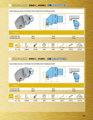 PART SERIES SERIES C_-HTGNR/L PQAURICT KSECRHIEASNGE (ISO 26623) H-TYPE HOLDER FOR ISO TURNING ACCEPTS TRIANGULAR INSERTS D F 91° L Designation D L F C4-HTGNL27050-1304 40mm 50mm 27mm PCla4c-HeThGoNldR2e7r050-1304 40mm 50mm 27mm HDWR HARDWARE Insert Reference Lever Lever Screw Coolant Nozzle Seat Pin Lever Screw Wrench Seat Pin Punch Seat TN_ _2.53_ hLaCrdLwa0re8d-eNscX1 haLrCdwSar3e -dNescX2 hardNwaZre8d3esc 3 hardLwSaPre3deBsc 4 harLd-wWare2de.s5c 5 haSrdPwaPre3d-e3scL6 hLaSrdTw2are.5de1sc.78 SERIES C_-HTJNR/L PART SERIES QUICK CHANGE (ISO 26623) H-TYPE HOLDER FOR ISO TURNING ACCEPTS TRIANGULAR INSERTS PART SERIES D F 93° L Designation D L F C4-HTJNL27050-1304 40mm 50mm 27mm C4-HTJNR27050-1304 40mm 50mm 27mm Placeholder HDWR Insert Reference Lever Lever Screw Coolant Nozzle Seat Pin Lever Screw Wrench Seat Pin Punch Seat TN_ _2.53_ LCL08-NX LCS3-NX NZ83 LSP3B L-W2.5 SPP3-3L LST2.51.8 HARDWARE hardware desc 1 hardware desc 2 hardware desc 3 hardware desc 4 hardware desc 5 hardware desc 6 hardware desc 7 229