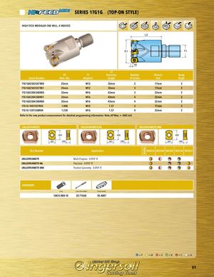 SERIES 1TG1G (TOP-ON STYLE) HIGH FEED MODULAR END MILL, 4 INDEXES L2 D1 T1 ap L2 D1 T1 Extension Number Wrench Ramp Cutter Number Nom. Dia. Adaption Length of Inserts Size Angle 1TG1G025035X7R00 25mm M12 35mm 2 17mm 2 1TG1G025035X7R01 25mm M12 35mm 3 17mm 2 1TG1G032043X8R00 32mm M16 43mm 3 22mm 2 1TG1G032043X8R01 32mm M16 43mm 4 22mm 2 1TG1G035043X8R00 35mm M16 43mm 4 22mm 2 1TG1G-10015X7R03 1.000 M12 1.57 3 17mm 3 1TG1G-12015X8R04 1.250 M16 1.57 4 22mm 2 Refer to the new product announcement for detailed programming information. Note, AP Max. = .060 inch UNLU0904M0TR UNLU0904M0TR-ML UNLU0904M0TR-MM .469 .469 .469 .361 .189 .361 .189 .361 .189 Part Number Application IN2035 IN2504 IN2505 IN2530 IN7035 UNLU0904M0TR Multi-Purpose - 0.094“ R UNLU0904M0TR-ML Precision - 0.094“ R UNLU0904M0TR-MM Positive Geometry - 0.094“ R HARDWARE Screw Screw Driver Blade Driver Handle SM35-088-10 DS-T106B DS-A00T =P =M =K =N =S =H 89 Grades