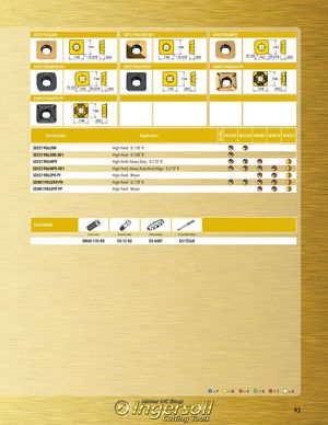 Grades SDES190620N SDES190620N-001 SDES1906MPR .746 .746 .742 .746 R.078 .250 .746 R.078 .250 R.125 .742 R.078 .250 SDES1906MPR-001 SDES1906ZPR-PF SDMS190620R-PH .742 .746 .748 R.125 .742 R.078 .250 .746 .250 .748 .250 SDMS1906ZPR-PP .748 .748 .250 Part Number Application IN2505 IN2530 IN4005 IN4030 IN4035 SDES190620N High-Feed - 0.178“ R SDES190620N-001 High-Feed - 0.148“ R SDES1906MPR High Feed, Heavy-Duty - 0.210“ R SDES1906MPR-001 High Feed, Heavy-Duty Keen Edge - 0.210“ R SDES1906ZPR-PF High-Feed - Wiper SDMS190620R-PH High-Feed - 0.178“ R SDMS1906ZPR-PP High-Feed - Wiper HARDWARE Insert Screw Retention Bolt Driver Handle Screw Driver Blade SM60-135-R0 SD-12-82 DS-A00T DS-T256B =P =M =K =N =S =H 93