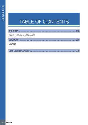 GUNDRILLS TABLE OF CONTENTS TRI-DEEP..................................................................................................... 283 GD-DH, GD-DHL, GDH-MKT SUMOGUN.................................................................................................. 293 MNSNT Solid Carbide Gundrills................................................................................. 298 282 ISCAR