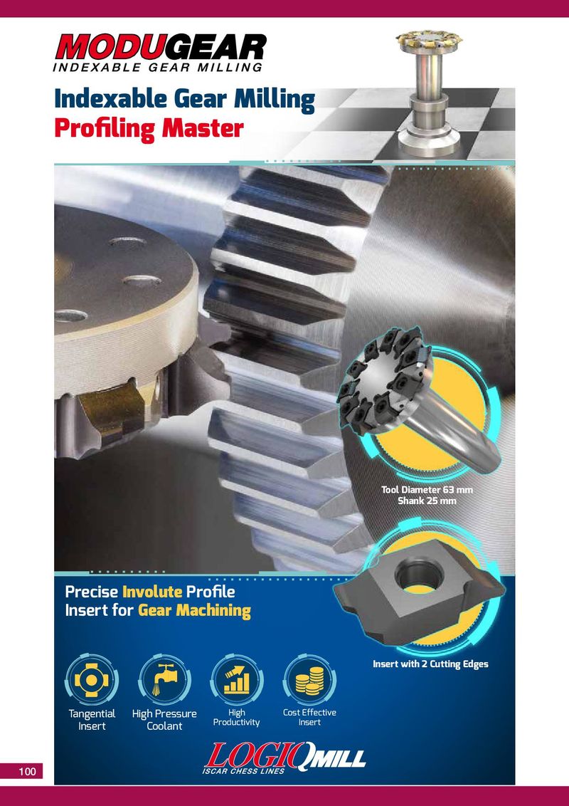 F O R I N T E R N A L U S E O N L Y • S U B J E C T T O C H A N G E Indexable Gear Milling Profiling Master Tool Diameter 63 mm Shank 25 mm Precise Involute Profile Insert for Gear Machining Insert with 2 Cutting Edges Tangential High Pressure High Cost Effective Productivity Insert Insert Coolant 100
