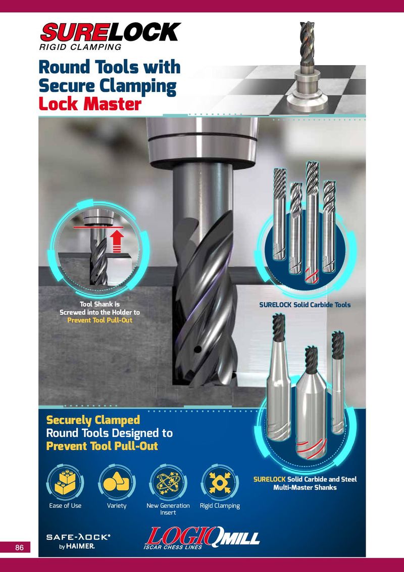 F O R I N T E R N A L U S E O N L Y • S U B J E C T T O C H A N G E SURE LOCK RIGID CLAMPING Round Tools with Secure Clamping Lock Master Tool Shank is SURELOCK Solid Carbide Tools Screwed into the Holder to Prevent Tool Pull-Out Securely Clamped Round Tools Designed to Prevent Tool Pull-Out SURELOCK Solid Carbide and Steel Multi-Master Shanks Ease of Use Variety New Generation Rigid Clamping Insert 86