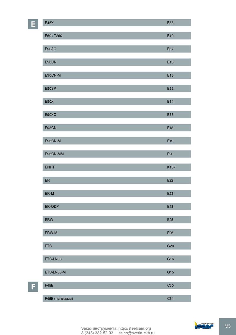 E45X B38 E E60 / T260 B40 E90AC B37 E90CN B13 E90CN-M B13 E90SP B22 E90X B14 E90XC B35 E93CN E18 E93CN-M E19 E93CN-MM E20 ENHT K107 ER E22 ER-M E23 ER-ODP E48 ERW E25 ERW-M E26 ETS G20 ETS-LN08 G16 ETS-LN08-M G15 F45E C50 F F45E (концевые) C51 M5 Заказ инструмента: http://steelcam.org 8 (343) 382-52-03 | sales@sverla-ekb.ru