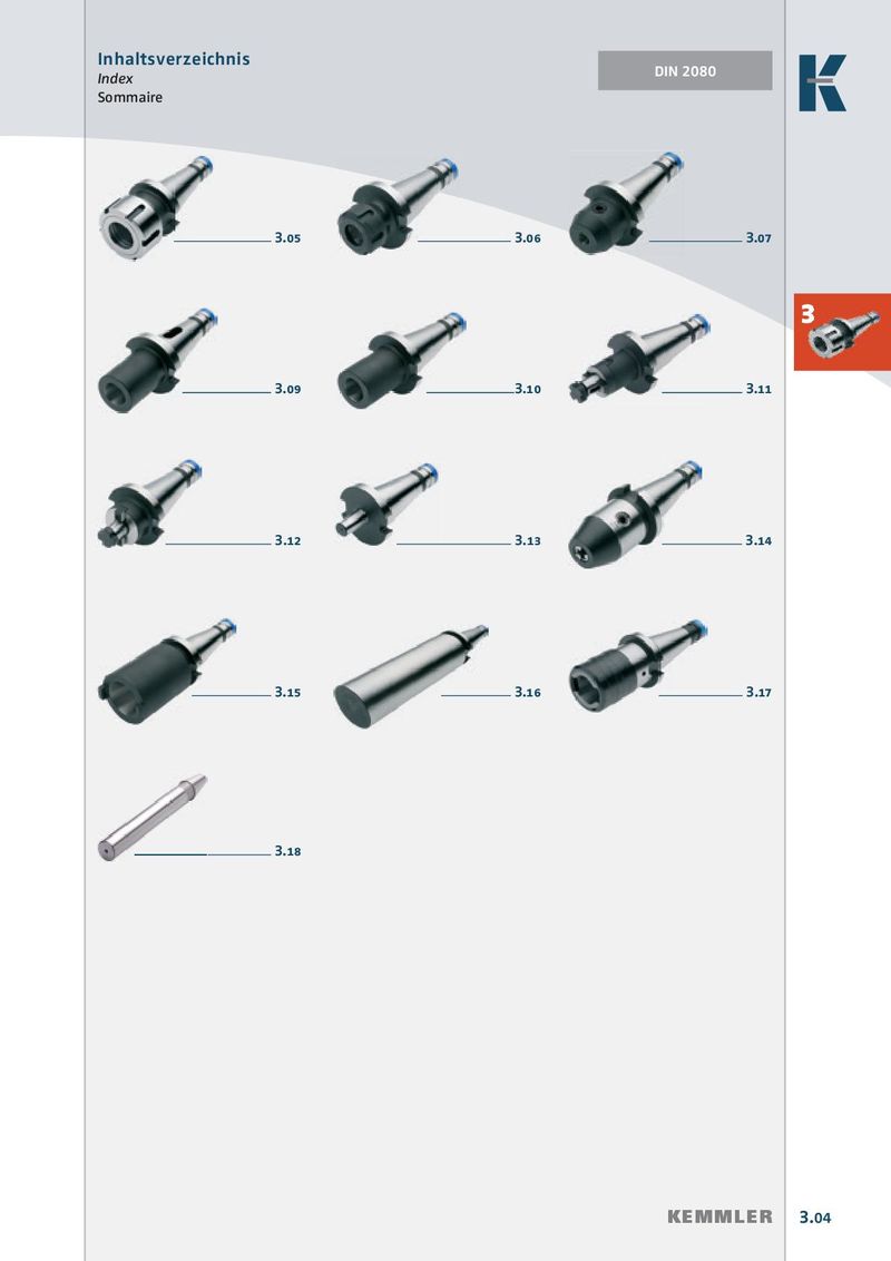 Inhaltsverzeichnis DIN 2080 Index Sommaire 3.05 3.06 3.07 3 3.09 3.10 3.11 3.12 3.13 3.14 3.15 3.17 3.16 3.18 KEMMLER 3.04