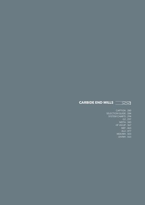 CARBIDE END MILLS CAPTION . 280 SELECTION GUIDE . 284 SYSTEM CHARTS . 294 G2 . 297 MDTA . 343 HF VH/UP . 367 MEF . 463 ALU . 477 MEX/MH . 503 UH/MH . 563