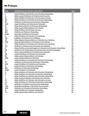 Fräsen SERIE BESCHREIBUNG DER STANDARD-SCHAFTFRÄSER SEITE 3 Zölliger Schaftfräser mit 2 Schneiden ohne Eckenradien, Standardlänge 176 3L Zölliger Langloch-Schaftfräser mit 2 Schneiden ohne Eckenradien 176 3EL Zölliger Schaftfräser mit 2 Schneiden ohne Eckenradien, extra lang 176 3CR Zölliger Schaftfräser mit 2 Schneiden mit Eckenradien, Standardlänge 176 3M Schaftfräser mit 2 Schneiden ohne Eckenradien, Standardlänge 179 3XLM Langloch-Schaftfräser mit 2 Schneiden ohne Eckenradien 179 3B Zölliger Radiusschaftfräser mit 2 Schneiden, Standdardlänge 180 3LB Zölliger Langloch-Radiusschaftfräser mit 2 Schneiden 180 3ELB Zölliger Schaftfräser mit 2 Schneiden, Extra lang 180 3MB Schaftfräser mit 2 Schneiden, Standardlänge 182 3XLMB Superlangloch-Schaftfräser mit 2 Schneiden 182 15 Zölliger Schaftfräser mit 2 Schneiden, kurze Ausführung 183 15M Schaftfräser mit 2 Schneiden, kurze Ausführung 183 15B Zölliger Doppelend-Radiusschaftfräser mit 2 Schneiden, kurze Ausführung 184 15MB Doppelend-Radiusschaftfräser mit 2 Schneiden, kurze Ausführung 184 17 Zölliger Schaftfräser mit 2 Schneiden ohne Eckenradien, kurze Ausführung 185 17M Schaftfräser mit 2 Schneiden ohne Eckenradien, kurze Ausführung 185 52 Zölliger Schaftfräser hoher Scherfestigkeit mit 2 Schneiden ohne Eckenradien, Standardlänge 186 52M Schaftfräser hoher Scherfestigkeit mit 2 Schneiden ohne Eckenradien, Standardlänge 186 59 Zölliger Langloch-Schaftfräser mit 2 Schneiden ohne Eckenradien 187 59M Langloch-Schaftfräser mit 2 Schneiden ohne Eckenradien 187 59B Zölliger Langloch-Radiusschaftfräser mit 2 Schneiden 188 59MB Langloch-Radiusschaftfräser mit 2 Schneiden 188 5 Zölliger Schaftfräser mit 3 Schneiden ohne Eckenradien, Standardlänge 189 5M Schaftfräser mit 3 Schneiden ohne Eckenradien, Standardlänge 190 5XLM Langloch-Schaftfräser mit 3 Schneiden ohne Eckenradien 190 5B Zölliger Schaftfräser mit 3 Schneiden, Standardlänge 191 5MB Schaftfräser mit 3 Schneiden, Standardlänge 192 5XLMB Langloch-Schaftfräser mit 3 Schneiden 192 23 Zölliger Schaftfräser mit 3 Schneiden ohne Eckenradien, Standardlänge 193 24 Zölliger Schaftfräser mit 3 Schneiden mit Eckenradien, Standardlänge 194 1 Zölliger Schaftfräser mit 4 Schneiden ohne Eckenradien, Standardlänge 195 1L Zölliger Langloch-Schaftfräser mit 4 Schneiden ohne Eckenradien 195 1EL Zölliger Schaftfräser mit 4 Schneiden ohne Eckenradien, extra lang 195 1CR Zölliger Schaftfräser mit 4 Schneiden mit Eckenradien, Standardlänge 195 1M Schaftfräser mit 4 Schneiden ohne Eckenradien, Standardlänge 199 1XLM Superlangloch-Schaftfräser mit 4 Schneiden ohne Eckenradien 199 1MCR Schaftfräser mit 4 Schneiden mit Eckenradien, Standardlänge 199 1B Zölliger Schaftfräser mit 4 Schneiden, Standardlänge 201 1LB Zölliger Langloch-Radiusschaftfräser mit 4 Schneiden 201 174 END MILLS wwENwD.kMyIoLcLSera-sgstool.com