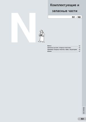 Комплектующие и запасные части N N1 ~ N8 Винты ............................................................................ N2 Запасные рычаги, опорные пластины..................... N4 Прижимы опорных пластин, гайки, эксцентрики... N6 Ключи ............................................................................. N7 N1 Запасные части