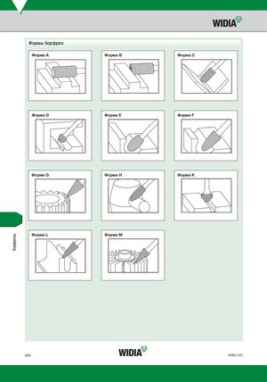 Формы борфрез Форма A Форма B Форма C Форма D Форма E Форма F Форма G Форма H Форма K Форма L Форма M 260 widia.com Борфрезы