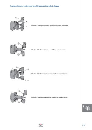 Assignation des outils pour machines avec tourelle à disque Utilisation d’attachements radiaux avec la broche en sens anti-horaire Utilisation d’attachements radiaux avec la broche en sens horaire Utilisation d’attachements axiaux avec la broche en sens anti-horaire Utilisation d’attachements axiaux avec la broche en sens anti-horaire j i j.59