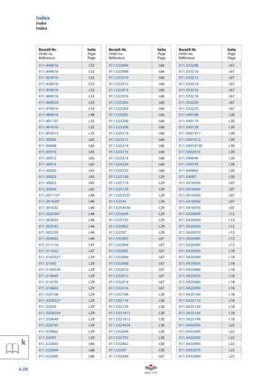 Index Index Index Bestell-Nr. Seite Bestell-Nr. Seite Bestell-Nr. Seite Order no. Page Order no. Page Order no. Page Référence Page Référence Page Référence Page 011.446016 i.52 011.522006 i.66 011.533208 i.67 011.449016 i.52 011.522008 i.66 011.533210 i.67 011.454516 i.52 011.522010 i.66 011.533212 i.67 011.456016 i.52 011.522012 i.66 011.533214 i.67 011.459016 i.52 011.522014 i.66 011.533216 i.67 011.460016 i.53 011.522016 i.66 011.533218 i.67 011.460024 i.53 011.523203 i.66 011.533220 i.67 011.470016 i.53 011.523204 i.66 011.533225 i.67 011.480016 i.48 011.523205 i.66 011.540108 i.30 011.491107 i.35 011.523206 i.66 011.540119 i.30 011.491610 i.35 011.523208 i.66 011.540129 i.30 011.492013 i.35 011.523210 i.66 011.5401411 i.30 011.50006 i.65 011.523212 i.66 011.5401612 i.30 011.50008 i.65 011.523214 i.66 011.54018145 i.30 011.50010 i.65 011.523216 i.66 011.5402016 i.30 011.50012 i.65 011.523218 i.66 011.540649 i.30 011.50016 i.65 011.523220 i.66 011.540755 i.30 011.50020 i.65 011.523225 i.66 011.540862 i.30 011.50025 i.65 011.525108 i.29 011.54097 i.30 011.50032 i.65 011.525119 i.29 011.5416030 i.07 011.50040 i.65 011.525129 i.29 011.5416040 i.07 011.501119* i.46 011.5253527 i.29 011.5416050 i.07 011.501628* i.46 011.52543 i.29 011.5416060 i.07 011.501632 i.46 011.5254534 i.29 011.5416070 i.07 011.502034* i.46 011.525649 i.29 011.5420040 i.12 011.502035 i.46 011.525755 i.29 011.5420050 i.12 011.502542 i.46 011.525862 i.29 011.5420060 i.12 011.503250 i.46 011.52597 i.29 011.5420070 i.12 011.504063 i.46 011.532003 i.67 011.5420080 i.12 011.511116 i.47 011.532004 i.67 011.5420090 i.12 011.511622 i.47 011.532005 i.67 011.5425030 i.18 011.5163527 i.29 011.532006 i.67 011.5425040 i.18 011.51643 i.29 011.532008 i.67 011.5425050 i.18 011.5164534 i.29 011.532010 i.67 011.5425060 i.18 011.516649 i.29 011.532012 i.67 011.5425070 i.18 011.516755 i.29 011.532014 i.67 011.5425080 i.18 011.516862 i.29 011.532016 i.67 011.5425090 i.18 011.520108 i.29 011.532108 i.30 011.5425100 i.18 011.5203527 i.29 011.532119 i.30 011.5425110 i.18 011.52043 i.29 011.532129 i.30 011.5425120 i.18 011.5204534 i.29 011.5321411 i.30 011.5425130 i.18 011.520649 i.29 011.5321612 i.30 011.5425140 i.18 011.520755 i.29 011.5324534 i.30 011.5432030 i.22 011.520862 i.29 011.532649 i.30 011.5432040 i.22 011.52097 i.29 011.532755 i.30 011.5432050 i.22 k 011.522003 i.66 011.532862 i.30 011.5432060 i.22 011.522004 i.66 011.53297 i.30 011.5432070 i.22 011.522005 i.66 011.533206 i.67 011.5432080 i.22 k.06 j