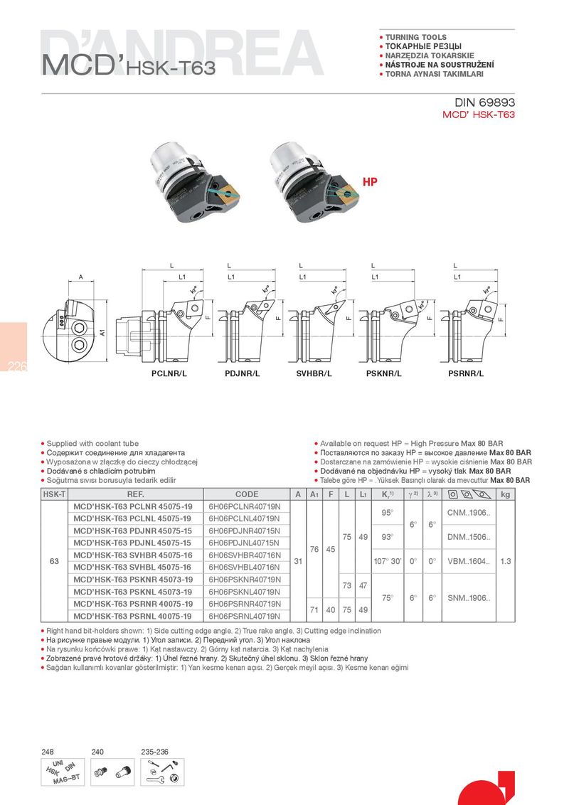 MCD’HSK-T63 PSKNL 45073-19 6H06PSKNL40719N 75° 6° 6° SNM..1906..