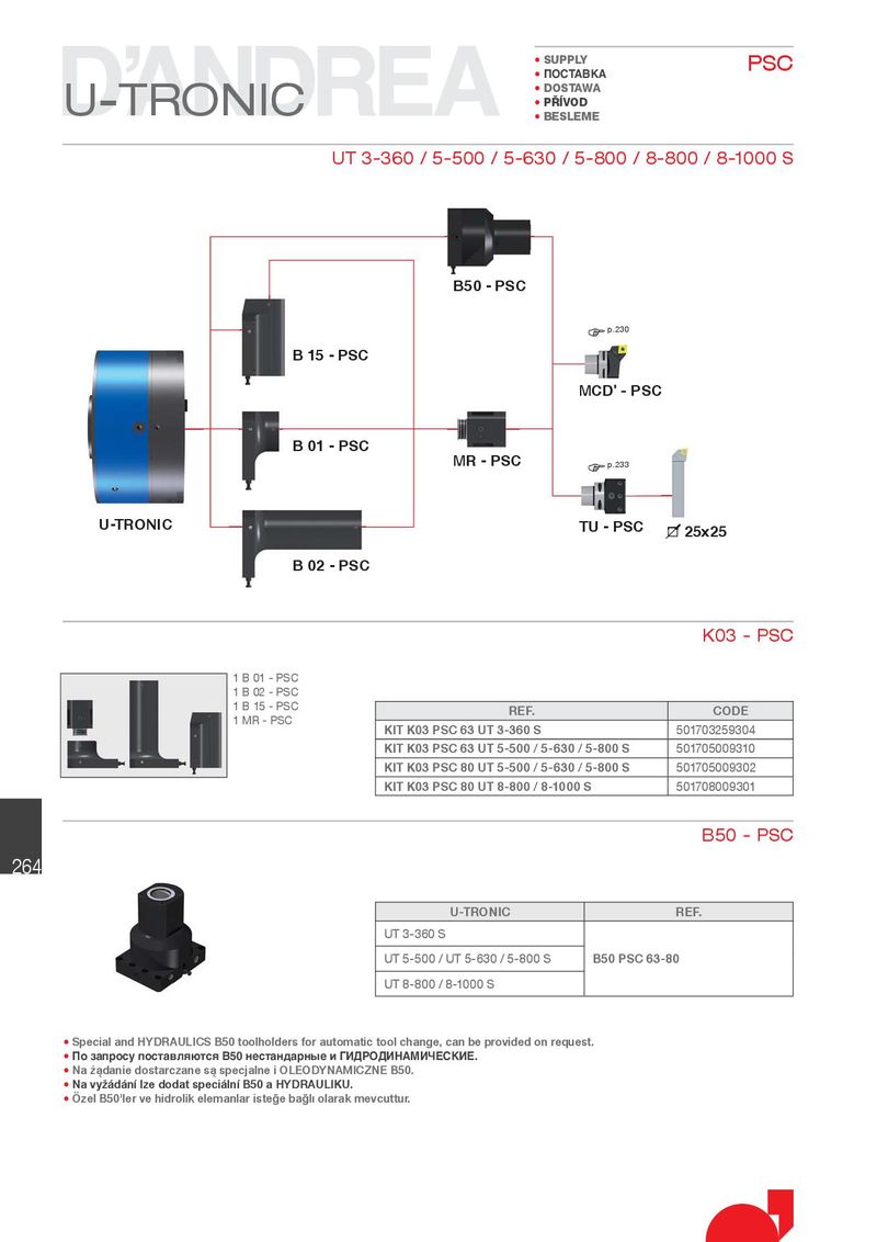 • SUPPLY PSC • ПОСТАВКА U-TRONIC • DOSTAWA • P¢ VOD • BESLEME UT 3-360 / 5-500 / 5-630 / 5-800 / 8-800 / 8-1000 S B50 - PSC ) p.230 B 15 - PSC MCD’ - PSC B 01 - PSC MR - PSC ) p.233 U-TRONIC TU - PSC 25x25 B 02 - PSC K03 - PSC %36& %36& %36& REF. CODE 1 MR - PSC KIT K03 PSC 63 UT 3-360 S 501703259304 KIT K03 PSC 63 UT 5-500 / 5-630 / 5-800 S 501705009310 KIT K03 PSC 80 UT 5-500 / 5-630 / 5-800 S 501705009302 KIT K03 PSC 80 UT 8-800 / 8-1000 S 501708009301 B50 - PSC 264 U-TRONIC REF. UT 3-360 S 87876 B50 PSC 63-80 876 • Special and HYDRAULICS B50 toolholders for automatic tool change, can be provided on request. • По запросу поставляются B50 нестандарные и ГИДРОДИНАМИЧЕСКИЕ. • Na Ťƅdanie dostarczane sƅ specIalne i OLEODYNAMICZNE B50. • Na vyţēdēnı lze dodat speciēlnı B50 a HYDRAULIKU. • Özel B50'ler ve hidrolik elemanlar isteīe baīl olarak mevcuttur.