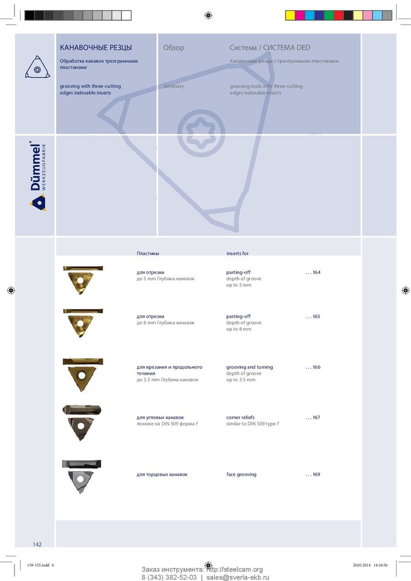 КАНАВОЧНЫЕ РЕЗЦЫ Обзор Система / СИСТЕМА DED Обработка канавок трехгранными Канавочные резцы с трехгранными пластинами пластинами grooving with three-cutting summary grooving tools with three-cutting edges indexable inserts edges indexable inserts Пластины inserts for для отрезки parting-off . . . 164 до 5 mm Глубина канавок depth of groove up to 5 mm для отрезки parting-off . . . 165 до 8 mm Глубина канавок depth of groove up to 8 mm для врезания и продольного grooving and turning . . . 166 точения depth of groove до 3.5 mm Глубина канавок up to 3.5 mm для угловых канавок corner reliefs . . . 167 похоже на DIN 509 форма F similar to DIN 509 type F для торцовых канавок face grooving . . . 169 142 139-155.indd 6 139-155.indd 6 20.03.2014 14:10:56 20.03.2014 14:10:56 Заказ инструмента: http://steelcam.org 8 (343) 382-52-03 | sales@sverla-ekb.ru
