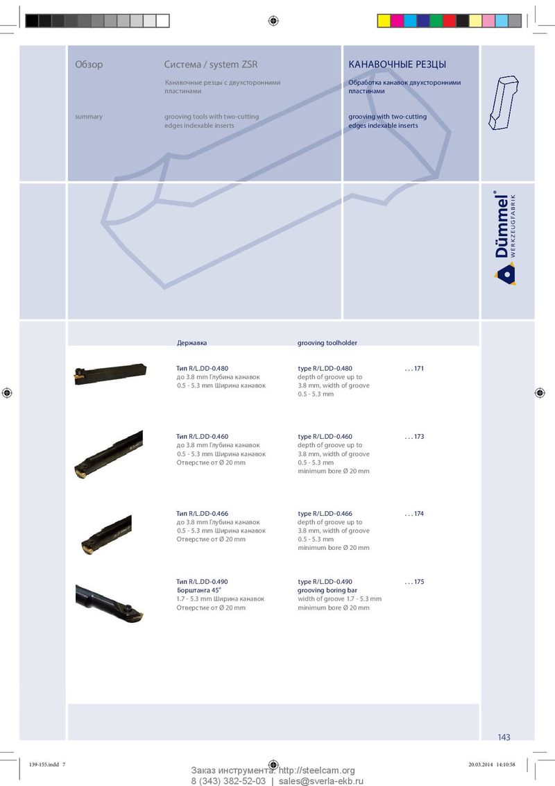 Обзор Система / system ZSR КАНАВОЧНЫЕ РЕЗЦЫ Канавочные резцы с двухсторонними Обработка канавок двухсторонними пластинами пластинами summary grooving tools with two-cutting grooving with two-cutting edges indexable inserts edges indexable inserts Державка grooving toolholder Тип R/L.DD-0.480 type R/L.DD-0.480 . . . 171 до 3.8 mm Глубина канавок depth of groove up to 0.5 - 5.3 mm Ширина канавок 3.8 mm, width of groove 0.5 - 5.3 mm Тип R/L.DD-0.460 type R/L.DD-0.460 . . . 173 до 3.8 mm Глубина канавок depth of groove up to 0.5 - 5.3 mm Ширина канавок 3.8 mm, width of groove Отверстие от Ø 20 mm 0.5 - 5.3 mm minimum bore Ø 20 mm Тип R/L.DD-0.466 type R/L.DD-0.466 . . . 174 до 3.8 mm Глубина канавок depth of groove up to 0.5 - 5.3 mm Ширина канавок 3.8 mm, width of groove Отверстие от Ø 20 mm 0.5 - 5.3 mm minimum bore Ø 20 mm Тип R/L.DD-0.490 type R/L.DD-0.490 . . . 175 Борштанга 45 ° grooving boring bar 1.7 - 5.3 mm Ширина канавок width of groove 1.7 - 5.3 mm Отверстие от Ø 20 mm minimum bore Ø 20 mm 143 139-155.indd 7 139-155.indd 7 20.03.2014 14:10:58 20.03.2014 14:10:58 Заказ инструмента: http://steelcam.org 8 (343) 382-52-03 | sales@sverla-ekb.ru