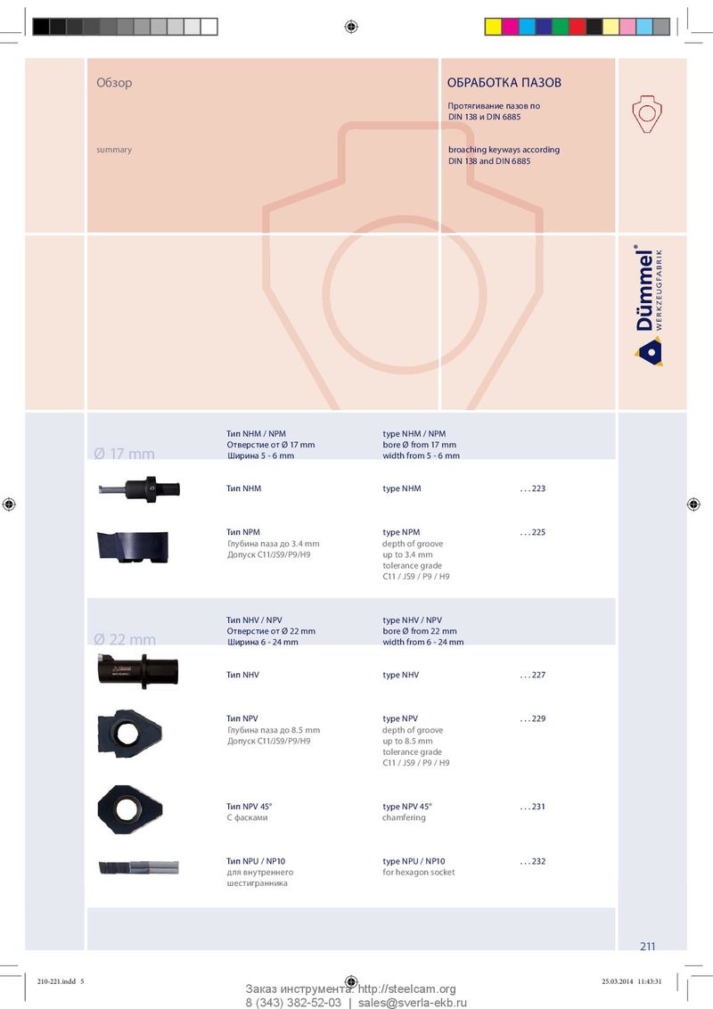Обзор ОБРАБОТКА ПАЗОВ Протягивание пазов по DIN 138 и DIN 6885 summary broaching keyways according DIN 138 and DIN 6885 Тип NHM / NPM type NHM / NPM Отверстие от Ø 17 mm bore Ø from 17 mm Ø 17 mm Ширина 5 - 6 mm width from 5 - 6 mm L2 Тип NHM type NHM . . . 223 Тип NPM type NPM . . . 225 Глубина паза до 3.4 mm depth of groove Допуск C11/JS9/P9/H9 up to 3.4 mm tolerance grade C11 / JS9 / P9 / H9 Тип NHV / NPV type NHV / NPV Отверстие от Ø 22 mm bore Ø from 22 mm Ø 22 mm Ширина 6 - 24 mm width from 6 - 24 mm Тип NHV type NHV . . . 227 Тип NPV type NPV . . . 229 Глубина паза до 8.5 mm depth of groove Допуск C11/JS9/P9/H9 up to 8.5 mm tolerance grade C11 / JS9 / P9 / H9 Тип NPV 45° type NPV 45° . . . 231 С фасками chamfering Тип NPU / NP10 type NPU / NP10 . . . 232 для внутреннего for hexagon socket шестигранника 211 210-221.indd 5 210-221.indd 5 25.03.2014 11:43:31 25.03.2014 11:43:31 Заказ инструмента: http://steelcam.org 8 (343) 382-52-03 | sales@sverla-ekb.ru