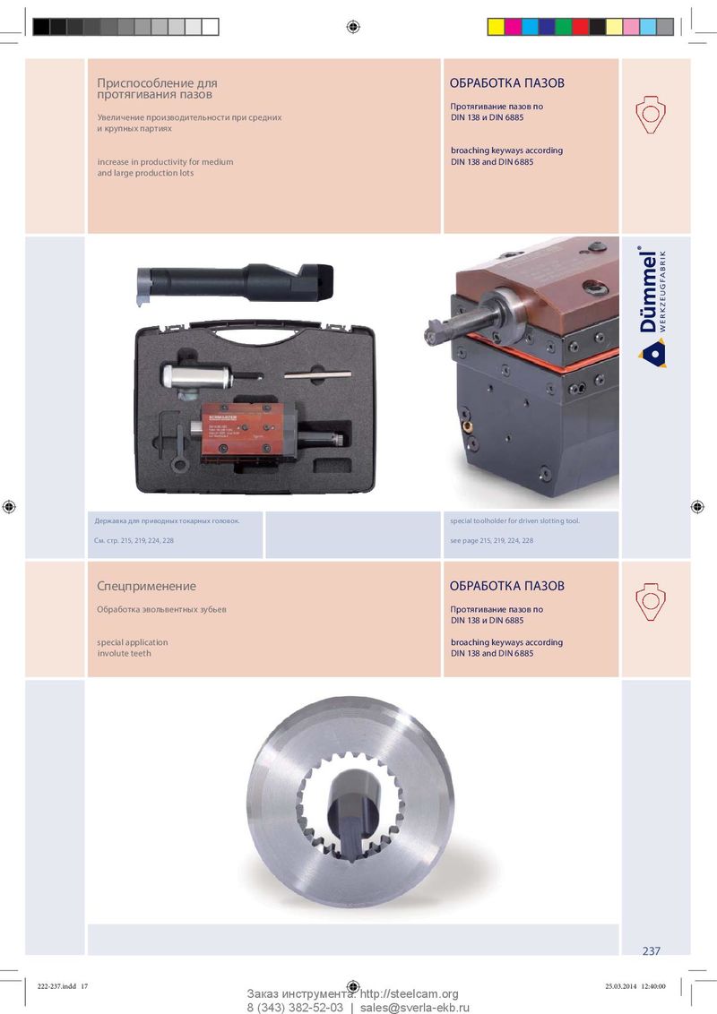 Приспособление для ОБРАБОТКА ПАЗОВ протягивания пазов Протягивание пазов по Увеличение производительности при средних DIN 138 и DIN 6885 и крупных партиях broaching keyways according increase in productivity for medium DIN 138 and DIN 6885 and large production lots Державка для приводных токарных головок. special toolholder for driven slotting tool. См. стр. 215, 219, 224, 228 see page 215, 219, 224, 228 Спецприменение ОБРАБОТКА ПАЗОВ Обработка эвольвентных зубьев Протягивание пазов по DIN 138 и DIN 6885 special application broaching keyways according involute teeth DIN 138 and DIN 6885 237 222-237.indd 17 222-237.indd 17 25.03.2014 12:40:00 25.03.2014 12:40:00 Заказ инструмента: http://steelcam.org 8 (343) 382-52-03 | sales@sverla-ekb.ru