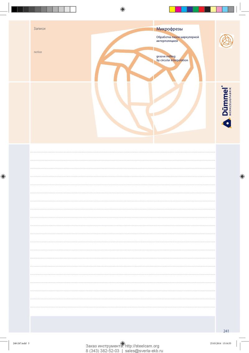 Записи Микрофрезы Обработка пазов циркулярной интерполяцией notice groove milling by circular interpolation 241 240-247.indd 5 240-247.indd 5 25.03.2014 13:14:55 25.03.2014 13:14:55 Заказ инструмента: http://steelcam.org 8 (343) 382-52-03 | sales@sverla-ekb.ru