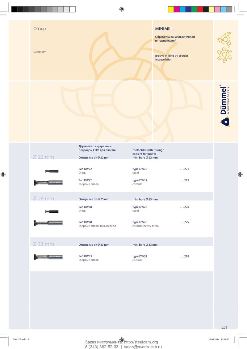 Обзор MINIMILL Обработка канавок круговой интерполяцией summary groove milling by circular interpolation Державка с внутренним подводом СОЖ для пластин toolholder with through coolant for inserts Ø 22 mm Отверстие от Ø 22 mm min. bore Ø 22 mm Тип DW22 type DW22 . . . 271 Сталь steel Тип DW22 type DW22 . . . 272 Твердый сплав carbide Ø 28 mm Отверстие от Ø 25 mm min. bore Ø 25 mm Тип DW28 type DW28 . . . 274 Сталь steel Тип DW28 type DW28 . . . 275 Твердый сплав/Тяж. металл carbide/heavy metal Ø 33 mm Отверстие от Ø 33 mm min. bore Ø 33 mm Тип DW33 type DW33 . . . 278 Твердый сплав carbide 251 250-277.indd 5 250-277.indd 5 27.03.2014 13:28:37 27.03.2014 13:28:37 Заказ инструмента: http://steelcam.org 8 (343) 382-52-03 | sales@sverla-ekb.ru