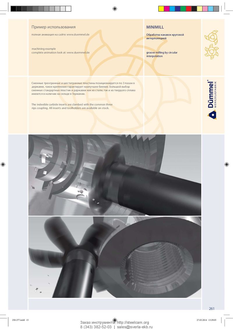 Пример использования MINIMILL полная анимация на сайте: www.duemmel.de Обработка канавок круговой интерполяцией machining example complete animation look at: www.duemmel.de groove milling by circular interpolation Сменные трехгранные и шестигранные пластины позиционируется по 3 пазам в державке, такое крепление гарантирует наилучшее биение. Большой выбор сменных стандартных пластин и державки как из стали, так и из твердого сплава имеются в наличии на складе в Германии. The indexible carbide inserts are clambed with the common three rips coupling. All inserts and toolholders are available on stock. 261 250-277.indd 15 250-277.indd 15 27.03.2014 13:29:05 27.03.2014 13:29:05 Заказ инструмента: http://steelcam.org 8 (343) 382-52-03 | sales@sverla-ekb.ru