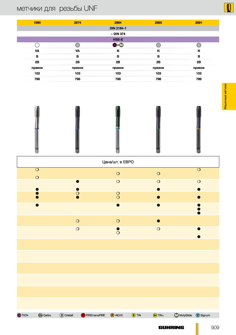метчики для резьбы UNF 1990 2874 2884 2885 2891 DIN 2184-1 ~ DIN 374 HSS-E О О ф + © О О VA VA N N N В В В В В 2B 2B 2В 2В 2В правое правое правое правое правое 103 103 103 103 103 796 796 798 798 786 Машинные метчики • • • • Ц е н а/ш т . в Е В Р О О о о о О • о о о • • • • • о о • • о • • • • • • • • о о • о • о • о © T iC N @ Carbo (Б) Cristall ф FIRE/nanoFIRE (?) AlCrN (§) TiN @ T iN + 0 M o ly G lid e ® S ig n u m 909
