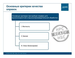 Основные критерии качества оправок Основные критерии при выборе оправок для высокоскоростной и высокопроизводительной обработки: I. Жесткость II. Биение III. Класс балансировки © Haimer GmbH 2020, Quality „100 % made in Germany“