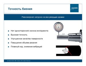 Точность биения Равномерная нагрузка на все режущие кромки ■ Нет одностороннего износа инструмента ■ Высокая точность ■ Улучшенное качество поверхности ■ Повышение объема резания ■ Плавный ход, снижение вибраций © Haimer GmbH 2020, Quality „100 % made in Germany“