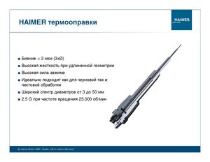 HAIMER термооправки ■ Биение < 3 мкм (3xØ) ■ Высокая жесткость при удлиненной геометрии ■ Высокая сила зажима ■ Идеально подходит как для черновой так и чистовой обработки ■ Широкий спектр диаметров от 3 до 50 мм ■ 2.5 G при частоте вращения 25.000 об/мин © Haimer GmbH 2020, Quality „100 % made in Germany“