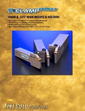 10MM & .375” WIDE INSERTS & HOLDERS • New, larger insert widths for increased material removal rates • TDT chip breaker for grooving and turning applications • Double-ended inserts for increased economy • Right hand and left hand holders with 1”, 1.25” and 1.50” shanks. 246