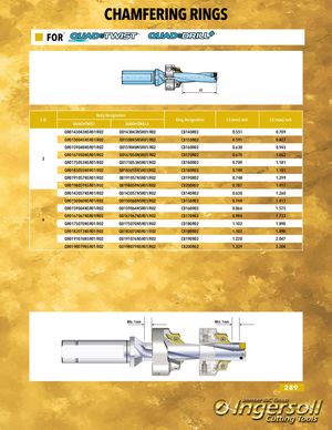 CHAMFERING RINGS FOR L5 Body Designation L:D Ring Designation L5 (min) inch L5 (max) inch QUAD•TWIST QUAD•DRILL+ QR0143043N5R01/R02 Q0143043N5R01/R02 CB140R02 0.551 0.709 QR0150045N5R01/R02 Q0150045N5R01/R02 CB150R02 0.591 0.827 QR0159048N5R01/R02 Q0159048N5R01/R02 CB160R02 0.630 0.945 QR0167050N5R01/R02 Q0167050N5R01/R02 CB170R02 0.670 1.062 3 QR0175053N5R01/R02 Q0175053N5R01/R02 CB180R02 0.709 1.181 QR0183055N5R01/R02 Q0183055N5R01/R02 CB180R02 0.709 1.181 QR0191057N5R01/R02 Q0191057N5R01/R02 CB190R02 0.748 1.299 QR0198059N5R01/R02 Q0198059N5R01/R02 CB200R02 0.787 1.417 QR0143057N5R01/R02 Q0143057N5R01/R02 CB140R02 0.630 1.260 QR0150060N5R01/R02 Q0150060N5R01/R02 CB150R02 0.748 1.417 QR0159064N5R01/R02 Q0159064N5R01/R02 CB160R02 0.866 1.575 QR0167067N5R01/R02 Q0167067N5R01/R02 CB170R02 0.984 1.732 4 QR0175070N5R01/R02 Q0175070N5R01/R02 CB180R02 1.102 1.890 QR0183073N5R01/R02 Q0183073N5R01/R02 CB180R02 1.102 1.890 QR0191076N5R01/R02 Q0191076N5R01/R02 CB190R02 1.220 2.047 QR0198079N5R01/R02 Q0198079N5R01/R02 CB200R02 1.339 2.204 Min. 1mm Min. 1mm 289