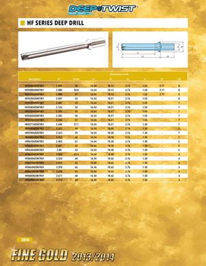 HF SERIES DEEP DRILL D d d1 L1 L2 LS Dimensions (inch) Description D" D mm L1 L2 LS d d1 L/D HF0500420N7R01 1.969 50 16.54 18.15 2.76 1.50 2.17 8 HF0508420N7R01 2.000 50.8 16.54 18.15 2.76 1.50 2.17 8 HF0510420N7R01 2.008 51 16.54 18.15 2.76 1.50 2.17 8 HF0520420N7R01 2.047 52 16.54 18.27 2.76 1.50 - 8 HF0530420N7R01 2.087 53 16.54 18.27 2.76 1.50 - 7 HF0540420N7R01 2.126 54 16.54 18.27 2.76 1.50 - 7 HF0550420N7R01 2.165 55 16.54 18.27 2.76 1.50 - 7 HF0560420N7R01 2.205 56 16.54 18.27 2.76 1.50 - 7 HF0570420N7R01 2.244 57 16.54 18.27 2.76 1.50 - 7 HF0571420N7R01 2.248 57.1 16.54 18.27 2.76 1.50 - 7 HF0580420N7R01 2.283 58 16.54 18.50 2.76 1.50 - 7 HF0590420N7R01 2.323 59 16.54 18.50 2.76 1.50 - 7 HF0600420N7R01 2.362 60 16.54 18.50 2.76 1.50 - 7 HF0610420N7R01 2.402 61 16.54 18.50 2.76 1.50 - 6 HF0620420N7R01 2.441 62 16.54 18.50 2.76 1.50 - 6 HF0630420N7R01 2.48 63 16.54 18.50 2.76 1.50 - 6 HF0635420N7R01 2.500 63.5 16.54 18.50 2.76 1.50 - 6 HF0640420N7R01 2.520 64 16.54 18.62 2.76 1.50 - 6 HF0650420N7R01 2.559 65 16.54 18.62 2.76 1.50 - 6 HF0660420N7R01 2.598 66 16.54 18.62 2.76 1.50 - 6 HF0670420N7R01 2.638 67 16.54 18.62 2.76 1.50 - 6 HF0680420N7R01 2.677 68 16.54 18.62 2.76 1.50 - 6 HF0690420N7R01 2.716 69 16.54 18.62 2.76 1.50 - 6 300