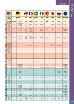 Material Group No. MATERIALS USER GUIDE USA Germany U.K. France Sweden Italy Spain Japan Russia EURONORM AISI/SAE/ UNS/ ASTM/AA Werkstoff DIN BS AFNOR SS UNI UNE JIS GOST EN A220-70003;A220 Class2070003;0.8165A220 Grade70003EN-GJMB-650-2;EN-JM1180;GTS-65-02P 65-02;6681 P65-02;P 570/3Mn 650-30862-030GMN 65FCMP 590KCh 63-3 EN-GJMB-650-2;EN-JM1180 A220-70003;A220 Class2070003;0.8170A220 Grade70003EN-GJMB-700-2;EN-JM1190;GTS-70-02P 70-2;MP 70-2;6681 PA 32-703 MP70-2;70-2;P 690/2Mn 700-20862-03P 70-2;GMN 7036116 Type AFCMP 690KCh 70-2EN-GJMB-700-2;EN-JM1190 A220-45006; A220 Class 45006; A220 Grade20 45006 A220- 45008;0.8145A220 ClassEN-GJMD-450-6;EN-JM1140;GTS-45-06;GTS-45P 45-06;MP 50-5;6681 PA32-703 MP45-0650-50854-00P 45-06Type E;36116 Type EKCh 45-7EN-GJMD-450-6;EN-JM1140 45008; A220 Grade 45008 A220-80002; A220 Class2080002; P 70-2 MN 700-2 854A220 Grade FCMP 70;FCMP 700KCh 80-1.5 80002 A220-90001; A220 Class 20 90001; A220 Grade 90001 A220-60004; A220 Class 20 60004; A220 Grade 60004 A220-40010; A220 Class 20 40010; 0852-00 A220 Grade 40010 20 0.8040 EN-GJMW-400-5;GTW-40-05W 40-05 MB 400-5 W 40-05 36113 Type A FCMW 370 EN-GJMW-400-5;EN-JM1030 20 0.8035 EN-GJMW-350-4;GTW-35-04W 35-04 MB 35-7 W 35-04 36113 Type B FCMW 330 EN-GJMW-350-4;EN-JM1010 AA5005; AA5006; A95005;21A95006;3.33155005; AlMg1;AlMg1C N41 A G0-6 144106 L3350 A5005 1510; AlMg1C;AMg15005A 5005A; 5006 AA1050;21A91050;1050;3.0255 Al99,5;Al99.5 1B A5 14407 9001/2 L-30511050A Al99.5;AD0Al99,5;1050A AA1200;21A91200 ;1200;3.02051200AAl99,0;Al99.0;Al991C A4 144010 Al99.0 L-3001 A1200 A0 Al99.0;AL99,0;1200 AA2017;22A92017;2017;3.1325;3.11242017AAlCu2,5Si(A);AlCu2.5Si(A);AlCuMg1A-U4G AlCu2,5Si(A);L-3120V65AlCu2.,5Si(A);2017A 22 3.2315 AlMgSi1 H30 A-SGM0.7 144312 9006/4 L-3453 AD35 AlSiMgMn;6082 22 3.4345 AlZnMgCuO,5;AlZnMgCuO.5 AlZnMgCu0.5;AlZnMgCu0,5;7022 22 3.1655 AlCu6BiPb;AlCuBiPb FC1 A-U5PbBi 144355 9002/5 L-3192 A2011 AlCu6BiPb;2011 AA7075;22A97075;70753.4365;3.4364AlZn5,5MgCu;AlZn5.5MgCu;AlZnMgCu1,5;AlZnMgCu1.57075;L95;A-Z5GUL96 AlZn5.5MgCu;9007/2L-3710A7075B95AlZn5,.5MgCu;AW-7075;7075 807