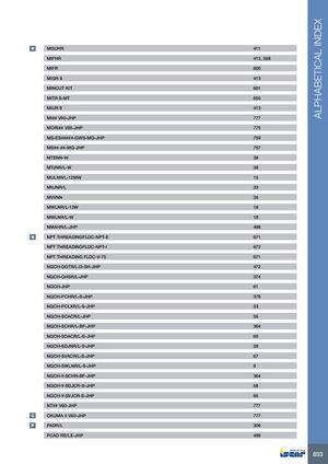 ALPHABETICAL INDEX M MGUHR 411 MIFHR 413, 598 MIFR 600 MIGR 8 413 MINCUT KIT 601 MITR 8-MT 650 MIUR 8 413 MI## V60-JHP 777 MORI## V85-JHP 775 MS-ES#####-GWS-MG-JHP 759 MS##-##-MG-JHP 757 MTENN-W 38 MTJNR/L-W 38 MULNR/L-12MW 15 MVJNR/L 33 MVVNN 35 MWLNR/L-13W 18 MWLNR/L-W 18 NMAHR/L-JHP 498 N NPT THREADINGFLDC-NPT-E 671 NPT THREADINGFLDC-NPT-I 672 NPT THREADING FLDC-V-75 671 NQCH-DGTR/L-D-SH-JHP 472 NQCH-GHSR/L-JHP 374 NQCH-JHP 61 NQCH-PCHR/L-S-JHP 378 NQCH-PCLXR/L-S-JHP 53 NQCH-SCACR/L-JHP 55 NQCH-SCHR/L-BF-JHP 364 NQCH-SDACR/L-S-JHP 60 NQCH-SDJNR/L-S-JHP 28 NQCH-SVACR/L-S-JHP 67 NQCH-SWLNR/L-S-JHP 8 NQCH-Y-SCHR-BF-JHP 364 NQCH-Y-SDJCR-S-JHP 58 NQCH-Y-SVJCR-S-JHP 65 NT## V60-JHP 777 O OKUMA # V60-JHP 777 P PADR/L 306 PCAD RE/LE-JHP 499 833