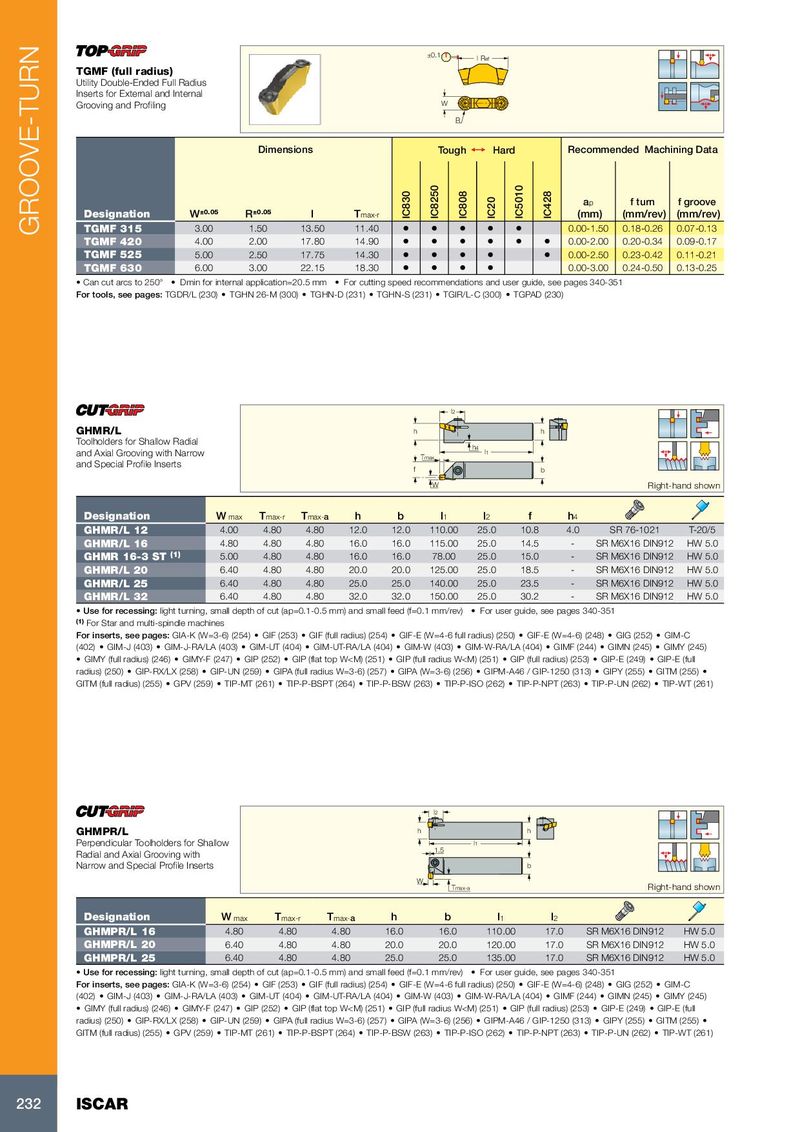 For inserts, see pages: GIA-K (W=3-6) (254) • GIF (253) • GIF (full radius) (254) • GIF-E (W=4-6 full radius) (250) • GIF-E (W=4-6) (248) • GIG (252) • GIM-C