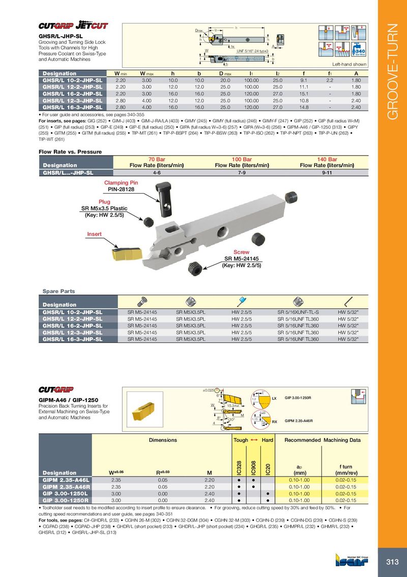 For inserts, see pages: GIG (252) • GIM-J (403) • GIM-J-RA/LA (403) • GIMY (245) • GIMY (full radius) (246) • GIMY-F (247) • GIP (252) • GIP (full radius W