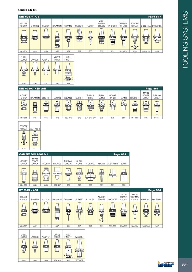 CONTENTS DIN 69871-A/B Page 847 MAXIN COLLET POWER THERMAL FITBORE CHUCK SHORTIN CLICKIN BALANCIN TAPPING CLICKFIT FLEXFIT CHUCK HYDROFIT CHUCK ADJUST SHELL MILL FACE MILL 849-850 849 859 850 859 859 860 850 851 853-854 858 854-855 855 SHELL MORSE ADJ COMBI JACOBS ADAPTER TAPER FINEFIT TOOLING SYSTEMS 856 856 857 857 858 DIN 69893 HSK A/E Page 861 MAXIN COLLET SHELL & SHELL MORSE POWER THERMAL CHUCK BALANCIN SHORTIN CLICKIN ENDMILL CLICKFIT FACE COMBI TAPER BLANK HYDROFIT CHUCK CHUCK 863-865 865 865 878 869-870 878 874-875, 877 876 876 880 867-868 866 871-874 FITBORE ADJUST ADJ FINEFIT 878 877 CAMFIX DIN 26623-1 Page 881 MAXIN COLLET POWER THERMAL SHELL CHUCK CHUCK CLICKFIT ENDMILL CHUCK COMBI FACE MILL FLEXFIT ADJ FINEFIT BLANK 884-885 885 885 886-887 888 890 890 891 891 893 BT MAS - 403 Page 894 MAXIN SRKIN COLLET ADJUST POWER THERMAL CHUCK SHORTIN CLICKIN BALANCIN TAPPING FLEXFIT CLICKFIT FITBORE HYDROFIT CHUCK CHUCK SHELL MILL FACE MILL 896-897 897 912 897 911 912 912 911 899-900 898-899 903-904 905-906 907 SHELL MORSE ADJ COMBI JACOBS ADAPTER TAPER FINEFIT WELDON 908 909 909 909-910 910 900-902 831 831