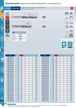 МОНОЛИТНОЕ ТВЕРДОСПЛАВНОЕ СВЕРЛО / SOLID CARBIDE DRILLS 1 222200880022 Твердосплавных сверла высокоэффективнаяSolid carbide twist drill сталь l1 MICRO DIN steel l2 GRAIN 6537 2 Полезная длинаEffective length INOX d2Нерж сталь Z DIN 6535d12NForm HA STAINLESS STEEL GJL l1 l2 30° 140° Полезная длина 3 GJS d2 Effective length d1 Z2 VTC GTWGTS TM-8 h7 Допуск на диаметр отверстияHole tolerance HRC > 3-6 +0,000 4 < 50 –0,012 > 6-10 +0,000 коротко- –0,015 стружеч- >10-18 +0,000 ногоshort chip –0,018 Параметры резки РисункиCutting dataDrawings 5 1324 DXF/STEP 6 Art. d1 h7 l3 l2 l1 d2 h6 €2222 08022 003300 001144I3,01420626,015,00Art.d1 h7l3 l2 l1 d2 h6 €2222 08022 005510 002200I5,12028666,017,00 2222 08022 003300 002233 I 3,0 23 28 66 6,0 19,00 2222 08022 005510 003355 I 5,1 35 44 82 6,0 22,00 2222 08022 003310 001144 I 3,1 14 20 62 6,0 15,00 2222 08022 005520 002200 I 5,2 20 28 66 6,0 17,00 2222 08022 003310 002233 I 3,1 23 28 66 6,0 19,00 2222 08022 005520 003355 I 5,2 35 44 82 6,0 22,00 2222 08022 003320 001144 I 3,2 14 20 62 6,0 15,00 2222 08022 005530 002200 I 5,3 20 28 66 6,0 17,00 2222 08022 003320 002233 I 3,2 23 28 66 6,0 19,00 2222 08022 005530 003355 I 5,3 35 44 82 6,0 22,00 2222 08022 003330 001144 I 3,3 14 20 62 6,0 15,00 2222 08022 005540 002200 I 5,4 20 28 66 6,0 17,00 2222 08022 003330 002233 I 3,3 23 28 66 6,0 19,00 2222 08022 005540 003355 I 5,4 35 44 82 6,0 22,00 7 2222 08022 003340 001144 I 3,4 14 20 62 6,0 15,002222 08022 003340 002233I3,42328666,019,002222 08022 005550 002200I5,5202866 6,0 17,002222 08022 005550 003355I5,53544826,024,00 2222 08022 003350 001144 I 3,5 14 20 62 6,0 15,00 2222 08022 005560 002200 I 5,6 20 28 66 6,0 18,00 NES 2222 08022 003350 002233 I 3,5 23 28 66 6,0 19,00 2222 08022 005560 003355 I 5,6 35 44 82 6,0 24,00 2222 08022 003360 001144 I 3,6 14 20 62 6,0 15,00 2222 08022 005570 002200 I 5,7 20 28 66 6,0 18,00 2222 08022 003360 002233 I 3,6 23 28 66 6,0 19,00 2222 08022 005570 003355 I 5,7 35 44 82 6,0 24,00 2222 08022 003370 001144 I 3,7 14 20 62 6,0 15,00 2222 08022 005580 002200 I 5,8 20 28 66 6,0 18,00 2222 08022 003370 002233 I 3,7 23 28 66 6,0 19,00 2222 08022 005580 003355 I 5,8 35 44 82 6,0 24,00 2222 08022 003380 001177 I 3,8 17 24 66 6,0 17,00 2222 08022 005590 002200 I 5,9 20 28 66 6,0 18,00 2222 08022 003380 002299 I 3,8 29 36 74 6,0 19,00 2222 08022 005590 003355 I 5,9 35 44 82 6,0 24,00 8 2222 08022 003390 001177 I 3,9 17 24 66 6,0 17,002222 08022 003390 002299I3,92936746,019,002222 08022 006600 002200I6,0202866 6,0 18,002222 08022 006600 003355I6,03544826,024,00 2222 08022 004400 001177 I 4,0 17 24 66 6,0 17,00 2222 08022 006610 002244 I 6,1 24 34 79 8,0 23,00 2222 08022 004400 002299 I 4,0 29 36 74 6,0 19,00 2222 08022 006610 004433 I 6,1 43 53 91 8,0 33,00 OIL 2222 08022 004410 001177 I 4,1 17 24 66 6,0 17,00 2222 08022 006620 002244 I 6,2 24 34 79 8,0 23,00 2222 08022 004410 002299 I 4,1 29 36 74 6,0 19,00 2222 08022 006620 004433 I 6,2 43 53 91 8,0 33,00 2222 08022 004420 001177 I 4,2 17 24 66 6,0 17,00 2222 08022 006630 002244 I 6,3 24 34 79 8,0 23,00 2222 08022 004420 002299 I 4,2 29 36 74 6,0 19,00 2222 08022 006630 004433 I 6,3 43 53 91 8,0 33,00 2222 08022 004430 001177 I 4,3 17 24 66 6,0 17,00 2222 08022 006640 002244 I 6,4 24 34 79 8,0 23,00 9 2222 08022 004430 002299 I 4,3 29 36 74 6,0 19,002222 08022 004440 001177I4,41724666,017,002222 08022 006640 004433I6,4435391 8,0 33,002222 08022 006650 002244I6,52434798,023,00 2222 08022 004440 002299 I 4,4 29 36 74 6,0 19,00 2222 08022 006650 004433 I 6,5 43 53 91 8,0 33,00 2222 08022 004450 001177 I 4,5 17 24 66 6,0 17,00 2222 08022 006660 002244 I 6,6 24 34 79 8,0 23,00 2222 08022 004450 002299 I 4,5 29 36 74 6,0 19,00 2222 08022 006660 004433 I 6,6 43 53 91 8,0 33,00 2222 08022 004460 001177 I 4,6 17 24 66 6,0 17,00 2222 08022 006670 002244 I 6,7 24 34 79 8,0 23,00 2222 08022 004460 002299 I 4,6 29 36 74 6,0 19,00 2222 08022 006670 004433 I 6,7 43 53 91 8,0 33,00 2222 08022 004470 001177 I 4,7 17 24 66 6,0 17,00 2222 08022 006680 002244 I 6,8 24 34 79 8,0 23,00 2222 08022 004470 002299 I 4,7 29 36 74 6,0 19,00 2222 08022 006680 004433 I 6,8 43 53 91 8,0 33,00 2222 08022 004480 002200 I 4,8 20 28 66 6,0 17,00 2222 08022 006690 002244 I 6,9 24 34 79 8,0 22,00 10 2222 08022 004480 003355 I 4,8 35 44 82 6,0 22,002222 08022 004490 002200I4,92028666,017,002222 08022 006690 004433I6,9435391 8,0 34,002222 08022 007700 002244I7,02434798,023,00 2222 08022 004490 003355 I 4,9 35 44 82 6,0 22,00 2222 08022 007700 004433 I 7,0 43 53 91 8,0 34,00 2222 08022 005500 002200 I 5,0 20 28 66 6,0 17,00 2222 08022 007710 002299 I 7,1 29 41 79 8,0 23,00 Index 2222 08022 005500 003355 I 5,0 35 44 82 6,0 22,00 2222 08022 007710 004433 I 7,1 43 53 91 8,0 34,00 262 CNC TOOLS DIVISION Для получения более подробной информации Вы можете позвонить нам по телефону +49 6203-4039-0 или отправить свой запрос по электронной почте: info@karnasch.tools. For more informations please call +49 6203-4039-0 send a mail to info@karnasch.tools. MACHI