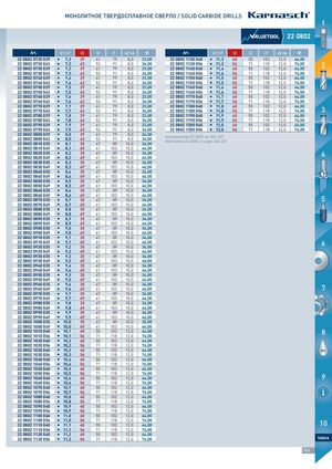 МОНОЛИТНОЕ ТВЕРДОСПЛАВНОЕ СВЕРЛО / SOLID CARBIDE DRILLS 1 222200880022 Art. d1 h7 l3 l2 l1 d2 h6 € Art. d1 h7 l3 l2 l1 d2 h6 € 2222 08022 007720 002299 I 7,2 29 41 79 8,0 23,00 2222 08022 111130 004400 I 11,3 40 55 102 12,0 44,00 2222 08022 007720 004433 I 7,2 43 53 91 8,0 34,002222 08022 007730 002299I7,32941798,023,002222 08022 111130 005566I11,3567111812,074,002222 08022 111140 004400I11,4405510212,044,002 2222 08022 007730 004433 I 7,3 43 53 91 8,0 34,00 2222 08022 111140 005566 I 11,4 56 71 118 12,0 74,00 2222 08022 007740 002299 I 7,4 29 41 79 8,0 23,00 2222 08022 111150 004400 I 11,5 40 55 102 12,0 44,00 2222 08022 007740 004433 I 7,4 43 53 91 8,0 34,00 2222 08022 111150 005566 I 11,5 56 71 118 12,0 74,00 2222 08022 007750 002299 I 7,5 29 41 79 8,0 23,00 2222 08022 111160 004400 I 11,6 40 55 102 12,0 44,00 2222 08022 007750 004433 I 7,5 43 53 91 8,0 34,00 2222 08022 111160 005566 I 11,6 56 71 118 12,0 74,00 2222 08022 007760 002299 I 7,6 29 41 79 8,0 23,00 2222 08022 111170 004400 I 11,7 40 55 102 12,0 44,00 2222 08022 007760 004433 I 7,6 43 53 91 8,0 34,00 2222 08022 111170 005566 I 11,7 56 71 118 12,0 74,00 2222 08022 007770 002299 I 7,7 29 41 79 8,0 23,002222 08022 007770 004433I7,74353918,034,002222 08022 111180 004400I11,8405510212,044,002222 08022 111180 005566I11,8567111812,074,003 2222 08022 007780 002299 I 7,8 29 41 79 8,0 23,00 2222 08022 111190 004400 I 11,9 40 55 102 12,0 44,00 2222 08022 007780 004433 I 7,8 43 53 91 8,0 34,00 2222 08022 111190 005566 I 11,9 56 71 118 12,0 74,00 2222 08022 007790 002299 I 7,9 29 41 79 8,0 23,00 2222 08022 112200 004400 I 12,0 40 55 102 12,0 45,00 2222 08022 007790 004433 I 7,9 43 53 91 8,0 34,00 2222 08022 112200 005566 I 12,0 56 71 118 12,0 74,00 2222 08022 008800 002299 I 8,0 29 412222 08022 008800 004433I8,043532222 08022 008810 003355I8,13547798,024,00918,034,008910,034,00Альтернатива 22 0402 см 266-267Alternative 22 0402 on page 266-267 2222 08022 008810 004499 I 8,1 49 61 103 10,0 46,00 2222 08022 008820 003355 I 8,2 35 47 89 10,0 34,002222 08022 008820 004499I8,2496110310,046,00 4 2222 08022 008830 003355 I 8,3 35 47 89 10,0 34,00 2222 08022 008830 004499 I 8,3 49 61 103 10,0 46,00 2222 08022 008840 003355 I 8,4 35 47 89 10,0 34,00 2222 08022 008840 004499 I 8,4 49 61 103 10,0 46,00 2222 08022 008850 003355 I 8,5 35 47 89 10,0 34,00 2222 08022 008850 004499 I 8,5 49 61 103 10,0 46,00 2222 08022 008860 003355 I 8,6 35 47 89 10,0 34,00 2222 08022 008860 004499 I 8,6 49 61 103 10,0 46,002222 08022 008870 003355I8,735478910,034,00 5 2222 08022 008870 004499 I 8,7 49 61 103 10,0 46,00 2222 08022 008880 003355 I 8,8 35 47 89 10,0 34,00 2222 08022 008880 004499 I 8,8 49 61 103 10,0 46,00 2222 08022 008890 003355 I 8,9 35 47 89 10,0 34,00 2222 08022 008890 004499 I 8,9 49 61 103 10,0 46,00 2222 08022 009900 003355 I 9,0 35 47 89 10,0 34,00 2222 08022 009900 004499 I 9,0 49 61 103 10,0 46,00 2222 08022 009910 003355 I 9,1 35 47 89 10,0 34,00 2222 08022 009910 004499 I 9,1 49 61 103 10,0 46,002222 08022 009920 003355I9,235478910,034,00 6 2222 08022 009920 004499 I 9,2 49 61 103 10,0 46,00 2222 08022 009930 003355 I 9,3 35 47 89 10,0 34,00 2222 08022 009930 004499 I 9,3 49 61 103 10,0 46,00 2222 08022 009940 003355 I 9,4 35 47 89 10,0 34,00 2222 08022 009940 004499 I 9,4 49 61 103 10,0 46,00 2222 08022 009950 003355 I 9,5 35 47 89 10,0 34,00 2222 08022 009950 004499 I 9,5 49 61 103 10,0 46,00 2222 08022 009960 003355 I 9,6 35 47 89 10,0 34,002222 08022 009960 004499I9,6496110310,046,00 7 2222 08022 009970 003355 I 9,7 35 47 89 10,0 34,00 2222 08022 009970 004499 I 9,7 49 61 103 10,0 46,00 MAC 2222 08022 009980 003355 I 9,8 35 47 89 10,0 34,00 2222 08022 009980 004499 I 9,8 49 61 103 10,0 46,00 2222 08022 009990 003355 I 9,9 35 47 89 10,0 34,00 2222 08022 009990 004499 I 9,9 49 61 103 10,0 46,00 2222 08022 110000 003355 I 10,0 35 47 89 10,0 35,00 2222 08022 110000 004499 I 10,0 49 61 103 10,0 46,00 2222 08022 110010 004400 I 10,1 40 55 102 12,0 44,002222 08022 110010 005566I10,1567111812,074,00 8 2222 08022 110020 004400 I 10,2 40 55 102 12,0 44,00 2222 08022 110020 005566 I 10,2 56 71 118 12,0 74,00 2222 08022 110030 004400 I 10,3 40 55 102 12,0 44,00 OIL 2222 08022 110030 005566 I 10,3 56 71 118 12,0 74,00 2222 08022 110040 004400 I 10,4 40 55 102 12,0 44,00 2222 08022 110040 005566 I 10,4 56 71 118 12,0 74,00 2222 08022 110050 004400 I 10,5 40 55 102 12,0 44,00 2222 08022 110050 005566 I 10,5 56 71 118 12,0 74,002222 08022 110060 004400I10,6405510212,044,00 9 2222 08022 110060 005566 I 10,6 56 71 118 12,0 74,00 2222 08022 110070 004400 I 10,7 40 55 102 12,0 44,00 2222 08022 110070 005566 I 10,7 56 71 118 12,0 74,00 2222 08022 110080 004400 I 10,8 40 55 102 12,0 44,00 2222 08022 110080 005566 I 10,8 56 71 118 12,0 74,00 2222 08022 110090 004400 I 10,9 40 55 102 12,0 44,00 2222 08022 110090 005566 I 10,9 56 71 118 12,0 74,00 2222 08022 111100 004400 I 11,0 40 55 102 12,0 44,00 2222 08022 111100 005566 I 11,0 56 71 118 12,0 74,002222 08022 111110 004400I11,1405510212,044,00 10 2222 08022 111110 005566 I 11,1 56 71 118 12,0 74,00 2222 08022 111120 004400 I 11,2 40 55 102 12,0 44,00 2222 08022 111120 005566 I 11,2 56 71 118 12,0 74,00 Index 263 HINES