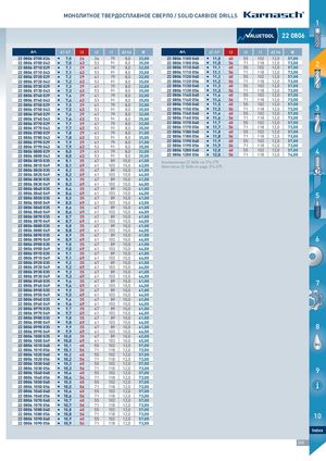 МОНОЛИТНОЕ ТВЕРДОСПЛАВНОЕ СВЕРЛО / SOLID CARBIDE DRILLS 1 2222 00880066 Art. d1 h7 l3 l2 l1 d2 h6 € Art. d1 h7 l3 l2 l1 d2 h6 € 2222 08066 007700 002244 I 7,0 24 34 79 8,0 32,00 2222 08066 111100 004400 I 11,0 40 55 102 12,0 57,00 2222 08066 007700 004433 I 7,0 43 53 91 8,0 35,002222 08066 007710 002299I7,12941798,032,002222 08066 111100 005566I11,0567111812,073,002222 08066 111110 004400I11,1405510212,057,002 2222 08066 007710 004433 I 7,1 43 53 91 8,0 35,00 2222 08066 111110 005566 I 11,1 56 71 118 12,0 73,00 2222 08066 007720 002299 I 7,2 29 41 79 8,0 32,00 2222 08066 111120 004400 I 11,2 40 55 102 12,0 57,00 2222 08066 007720 004433 I 7,2 43 53 91 8,0 35,00 2222 08066 111120 005566 I 11,2 56 71 118 12,0 73,00 2222 08066 007730 002299 I 7,3 29 41 79 8,0 32,00 2222 08066 111130 004400 I 11,3 40 55 102 12,0 57,00 2222 08066 007730 004433 I 7,3 43 53 91 8,0 35,00 2222 08066 111130 005566 I 11,3 56 71 118 12,0 73,00 2222 08066 007740 002299 I 7,4 29 41 79 8,0 32,00 2222 08066 111140 004400 I 11,4 40 55 102 12,0 57,00 2222 08066 007740 004433 I 7,4 43 53 91 8,0 35,00 2222 08066 111140 005566 I 11,4 56 71 118 12,0 73,00 2222 08066 007750 002299 I 7,5 29 41 79 8,0 32,002222 08066 007750 004433I7,54353918,035,002222 08066 111150 004400I11,5405510212,057,002222 08066 111150 005566I11,5567111812,073,003 2222 08066 007760 002299 I 7,6 29 41 79 8,0 32,00 2222 08066 111160 004400 I 11,6 40 55 102 12,0 57,00 2222 08066 007760 004433 I 7,6 43 53 91 8,0 35,00 2222 08066 111160 005566 I 11,6 56 71 118 12,0 73,00 2222 08066 007770 002299 I 7,7 29 41 79 8,0 32,00 2222 08066 111170 004400 I 11,7 40 55 102 12,0 57,00 2222 08066 007770 004433 I 7,7 43 53 91 8,0 35,00 2222 08066 111170 005566 I 11,7 56 71 118 12,0 73,00 2222 08066 007780 002299 I 7,8 29 41 79 8,0 31,00 2222 08066 111180 004400 I 11,8 40 55 102 12,0 57,00 2222 08066 007780 004433 I 7,8 43 53 91 8,0 35,00 2222 08066 111180 005566 I 11,8 56 71 118 12,0 73,00 2222 08066 007790 002299 I 7,9 29 41 79 8,0 31,00 2222 08066 111190 004400 I 11,9 40 55 102 12,0 57,00 2222 08066 007790 004433 I 7,9 43 53 91 8,0 35,00 2222 08066 111190 005566 I 11,9 56 71 118 12,0 73,00 2222 08066 008800 002299 I 8,0 29 41 79 8,0 32,002222 08066 008800 004433I8,04353918,035,002222 08066 112200 004400I12,0405510212,057,002222 08066 112200 005566I12,0567111812,074,004 2222 08066 008810 003355 I 8,1 35 47 89 10,0 41,00 Альтернатива 22 0406 см 274-275 2222 08066 008810 004499 I 8,1 49 61 103 10,0 43,00 Alternative 22 0406 on page 274-275 2222 08066 008820 003355 I 8,2 35 47 89 10,0 41,00 2222 08066 008820 004499 I 8,2 49 61 103 10,0 44,00 2222 08066 008830 003355 I 8,3 35 47 89 10,0 41,00 2222 08066 008830 004499 I 8,3 49 61 103 10,0 44,00 2222 08066 008840 003355 I 8,4 35 47 89 10,0 41,00 2222 08066 008840 004499 I 8,4 49 61 103 10,0 44,002222 08066 008850 003355I8,535478910,041,00 5 2222 08066 008850 004499 I 8,5 49 61 103 10,0 43,00 2222 08066 008860 003355 I 8,6 35 47 89 10,0 41,00 2222 08066 008860 004499 I 8,6 49 61 103 10,0 44,00 2222 08066 008870 003355 I 8,7 35 47 89 10,0 41,00 2222 08066 008870 004499 I 8,7 49 61 103 10,0 44,00 2222 08066 008880 003355 I 8,8 35 47 89 10,0 41,00 2222 08066 008880 004499 I 8,8 49 61 103 10,0 44,00 2222 08066 008890 003355 I 8,9 35 47 89 10,0 41,00 2222 08066 008890 004499 I 8,9 49 61 103 10,0 44,00 6 2222 08066 009900 003355 I 9,0 35 47 89 10,0 41,00 2222 08066 009900 004499 I 9,0 49 61 103 10,0 44,00 2222 08066 009910 003355 I 9,1 35 47 89 10,0 41,00 2222 08066 009910 004499 I 9,1 49 61 103 10,0 44,00 2222 08066 009920 003355 I 9,2 35 47 89 10,0 41,00 2222 08066 009920 004499 I 9,2 49 61 103 10,0 44,00 2222 08066 009930 003355 I 9,3 35 47 89 10,0 41,00 2222 08066 009930 004499 I 9,3 49 61 103 10,0 44,00 2222 08066 009940 003355 I 9,4 35 47 89 10,0 41,002222 08066 009940 004499I9,4496110310,044,00 7 2222 08066 009950 003355 I 9,5 35 47 89 10,0 41,002222 08066 009950 004499I9,5496110310,044,00 MAC 2222 08066 009960 003355 I 9,6 35 47 89 10,0 41,00 2222 08066 009960 004499 I 9,6 49 61 103 10,0 44,00 2222 08066 009970 003355 I 9,7 35 47 89 10,0 41,00 2222 08066 009970 004499 I 9,7 49 61 103 10,0 44,00 2222 08066 009980 003355 I 9,8 35 47 89 10,0 41,00 2222 08066 009980 004499 I 9,8 49 61 103 10,0 44,00 2222 08066 009990 003355 I 9,9 35 47 89 10,0 41,00 8 2222 08066 009990 004499 I 9,9 49 61 103 10,0 44,00 2222 08066 110000 003355 I 10,0 35 47 89 10,0 42,00 2222 08066 110000 004499 I 10,0 49 61 103 10,0 45,00 2222 08066 110010 004400 I 10,1 40 55 102 12,0 57,00 OIL 2222 08066 110010 005566 I 10,1 56 71 118 12,0 73,00 2222 08066 110020 004400 I 10,2 40 55 102 12,0 57,00 2222 08066 110020 005566 I 10,2 56 71 118 12,0 73,00 2222 08066 110030 004400 I 10,3 40 55 102 12,0 57,00 2222 08066 110030 005566 I 10,3 56 71 118 12,0 73,002222 08066 110040 004400I10,4405510212,057,00 9 2222 08066 110040 005566 I 10,4 56 71 118 12,0 73,00 2222 08066 110050 004400 I 10,5 40 55 102 12,0 57,00 2222 08066 110050 005566 I 10,5 56 71 118 12,0 73,00 2222 08066 110060 004400 I 10,6 40 55 102 12,0 57,00 2222 08066 110060 005566 I 10,6 56 71 118 12,0 73,00 2222 08066 110070 004400 I 10,7 40 55 102 12,0 57,00 2222 08066 110070 005566 I 10,7 56 71 118 12,0 73,00 2222 08066 110080 004400 I 10,8 40 55 102 12,0 57,00 2222 08066 110080 005566 I 10,8 56 71 118 12,0 73,002222 08066 110090 004400I10,9405510212,057,00 10 2222 08066 110090 005566 I 10,9 56 71 118 12,0 73,00 Index 265 HINES