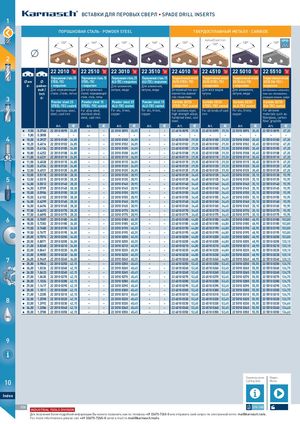 ПВСЕТРАОВВКОИЕ ДСЛВЕЯРПЛЕОР•ОВSЫPAХDСEВDЕRРIЛLL• SPADE DRILL INSERTS 1 ПОРОШКОВАЯ СТАЛЬ · POWDER STEEL ТВЕРДОСПЛАВНЫЙ МЕТАЛЛ · CARBIDE литье/Cast iron 132° 144° 132° 144° 132° 132° 132° 132° 2 22 2010 22 2510 22 3010 22 3510 22 4010 22 4510 22 5010 22 5510 Порошковая сталь 25 Порошковая сталь 15 Порошковая сталь 25 Порошковая сталь 15 Твердосплавный металл Твердосплавный металл Твердосплавный металл Твердосплавный металл мм STEEL-TEC STEEL-TEC ALU-TEC с покрытием ALU-TEC с покрытием 20/30 STEEL-TEC 20/30 STEEL-TEC 20/30 ALU-TEC 20/30 DIA-TEC с d1 дюймо- с покрытием с покрытием Для алюминия, Для алюминия, с покрытием с покрытием с покрытием покрытием вый / Для нержавеющей Для легированных латуни, меди латуни, меди Для нержавеющей стали, высо- Для всех видов Для алюминия, Для абразивных материалов, Inch стали, стали, литье сталей, нержавеющей копрочной стали, закаленной чугуна латуни, меди таких как: стекловолокно, 3 d1 стали, сталь, литье стали, стальная отливка углеродное волокно, графитPowder steel 25Powder steel 15Powder steel 25Powder steel 15Carbide 20/30Carbide 20/30Carbide 20/30Carbide 20/30 STEEL-TEC coated STEEL-TEC coated ALU-TEC coated ALU-TEC coated STEEL-TEC coated STEEL-TEC coated ALU-TEC coated DIA-TEC coated For stainless steel, For alloy steel, For alu, brass, For alu, brass, For stainless steel, For all kinds of cast For alu, brass, For abrasive steel, cast iron stainless steel, copper copper high strength alloys, iron copper materials such as: steel, cast iron hardened steel, cast fiberglass, carbon steel fiber, graphite Art. € Art. € Art. € Art. € Art. € Art. € Art. € Art. € I 9,50 0.3740 222220010000095 24,85 – – 222330010000095 26,05 – – 222440010000095 29,30 222445510000095 29,30 222550010000095 30,45 222555510000095 67,20 9,80 0.3858 – – – – – – – – – – – – – – – – 4 I 10,00 0.3937 222220010001100 24,85 – – 222330010001100 26,05 – – 222440010001100 29,30 222445510001100 29,30 222550010001100 30,45 222555510001100 67,20 I 10,20 0.4016 222220010001102 24,85 – – 222330010001102 26,05 – – 222440010001102 29,30 222445510001102 29,30 222550010001102 30,45 222555510001102 67,20 I 10,50 0.4134 222220010001105 24,85 – – 222330010001105 26,05 – – 222440010001105 29,30 222445510001105 29,30 222550010001105 30,45 222555510001105 67,20 I 10,80 0.4252 222220010001108 24,85 – – 222330010001108 26,05 – – 222440010001108 29,30 222445510001108 29,30 222550010001108 30,45 222555510001108 67,20 I 11,00 0.4331 222220010001110 24,85 – – 222330010001110 26,05 – – 222440010001110 29,30 222445510001110 29,30 222550010001110 30,45 222555510001110 67,20 I 11,50 0.4528 222220010001115 24,85 – – 222330010001115 26,05 – – 222440010001115 29,30 222445510001115 29,30 222550010001115 30,45 222555510001115 67,20 I 12,00 0.4724 222220010001120 24,85 – – 222330010001120 26,05 – – 222440010001120 29,30 222445510001120 29,30 222550010001120 30,45 222555510001120 67,20 I 12,50 0.4921 222220010001125 24,85 – – 222330010001125 26,05 – – 222440010001125 29,30 222445510001125 29,30 222550010001125 30,45 222555510001125 67,20 I 13,00 0.5118 222220010001130 28,30 – – 222330010001130 28,95 – – 222440010001130 34,45 222445510001130 34,45 222550010001130 35,10 222555510001130 93,95 5 I 13,50 0.5315 222220010001135 28,30 – – 222330010001135 28,95 – – 222440010001135 34,45 222445510001135 34,45 222550010001135 35,10 222555510001135 93,95 I 14,00 0.5512 222220010001140 28,30 – – 222330010001140 28,95 – – 222440010001140 34,45 222445510001140 34,45 222550010001140 35,10 222555510001140 93,95 I 14,50 0.5709 222220010001145 28,30 – – 222330010001145 28,95 – – 222440010001145 34,45 222445510001145 34,45 222550010001145 35,10 222555510001145 93,95 I 15,00 0.5906 222220010001150 28,30 – – 222330010001150 28,95 – – 222440010001150 34,45 222445510001150 34,45 222550010001150 35,10 222555510001150 93,95 I 15,50 0.6102 222220010001155 28,30 – – 222330010001155 28,95 – – 222440010001155 34,45 222445510001155 34,45 222550010001155 35,10 222555510001155 93,95 I 16,00 0.6299 222220010001160 28,30 – – 222330010001160 28,95 – – 222440010001160 34,45 222445510001160 34,45 222550010001160 35,10 222555510001160 93,95 I 16,50 0.6496 222220010001165 28,30 – – 222330010001165 28,95 – – 222440010001165 34,45 222445510001165 34,45 222550010001165 35,10 222555510001165 93,95 I 17,00 0.6693 222220010001170 28,30 – – 222330010001170 28,95 – – 222440010001170 34,45 222445510001170 34,45 222550010001170 35,10 222555510001170 93,95 I 17,50 0.6890 222220010001175 28,30 – – 222330010001175 28,95 – – 222440010001175 34,45 222445510001175 34,45 222550010001175 35,10 222555510001175 93,95 6 I 18,00 0.7087 222220010001180 36,00 – – 222330010001180 40,35 – – 222440010001180 44,80 222445510001180 44,80 222550010001180 48,90 222555510001180 103,80 I 18,50 0.7283 222220010001185 36,00 – – 222330010001185 40,35 – – 222440010001185 44,80 222445510001185 44,80 222550010001185 48,90 222555510001185 103,80 I 19,00 0.7480 222220010001190 36,00 – – 222330010001190 40,35 – – 222440010001190 44,80 222445510001190 44,80 222550010001190 48,90 222555510001190 103,80 I 19,50 0.7677 222220010001195 36,00 – – 222330010001195 40,35 – – 22244001