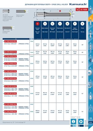 ДЕРЖАВКИ ДЛЯ ПЕРОВЫХ СВЕРЛ • SPADE DRILL HOLDER 1 F l4 222211002200 l3 Ø mm DIN 1835-B Прямая канавка · d2 d1 Цилиндрический хвостовик Straight flute с поверхностью прижима · G l5 2 Lateral fixation type l1 flange shank l3 l5 l4 l1 d2 F G Полезная Длина корпуса Новая реф. Общая длина Хвостовик- Длина Резьба ≈ 12×DСверхдлинный · длина длина хвостовика 3Max. drillBody-lengthREF.-lengthOverall lengthShank-Shank lengthPipe tap Overlength depth Art. € мм | дюймовый мм | дюймовый мм | дюймовый мм | дюймовый мм | дюймовый мм | дюймовый I 22 11002000222220 000095 196,40 9,5-1111,,00мmмm| 0|.037.34704-0.-403.4313"31" ОПOТPИTМIMАЛAЬLН·ОO·POTPIMTIAMLAL 222,0 мм 251,7 мм 254,1 мм 301,7 мм 20,0 мм 50,0 мм 4 1/8" 8.7401" 9.9094" 10.0039" 11.8780" 0.7874" 1.9685" I 22 11002000222223 001115 222,3 мм 251,7 мм 254,1 мм 301,7 мм 20,0 мм 50,0 мм196,40 1/8" 11,5--1122,,55мmмm| 0|.405.42582-08.-409.2419"21" ОПOТPИTМIMАЛAЬLН·ОO·POTPIMTIAMLAL 8.7519" 9.9094" 10.0039" 11.8780" 0.7874" 1.9685" I 22 11002000229950 001130 245,40 5 13,0--1177,,55мmмm| 0|.501.51181-08.-608.9608"90" ВОMЗÖМGОLЖICНHО · POOSSSSIIBBLLEE 13,0--1155,,00мmмm| 0|.501.51181-08.-509.0569"06" ОПOТPИTМIMАЛAЬLН·ОO·POTPIMTIAMLAL 295,0 мм 323,9 мм 326,7 мм 373,9 мм 20,0 мм 50,0 мм 1/8" I 22 11002000229950 001155 245,40 11.6142" 12.7520" 12.8622" 14.7205" 0.7874" 1.9685" 15,5--1177,,55мmмm| 0|.601.60120-02.-608.9608"90" ОПOТPИTМIMАЛAЬLН·ОO·POTPIMTIAMLAL 6 I 22 11002000445570 001180 337,50 18,0--2244,,00мmмm| 0|.700.78078-07.-904.4994"49" ВОMЗÖМGОLЖICНHО · POOSSSSIIBBLLEE 18,0--2211,,00мmмm| 0|.700.78078-07.-802.6882"68" ОПOТPИTМIMАЛAЬLН·ОO·POTPIMTIAMLAL 457,0 мм 494,5 мм 498,1 мм 550,5 мм 25,0 мм 56,0 мм 1/8" I 22 11002000445570 002220 337,50 17.9921" 19.4685" 19.6102" 21.6732" 0.9842" 2.2047" 22,0--2244,,00мmмm| 0|.806.86616-01.-904.4994"49" ОПOТPИTМIMАЛAЬLН·ОO·POTPIMTIAMLAL 7 MAC I 22 11002000551110 002250 406,80 25,0--3355,,00мmмm| 0|.908.94834-13.-317.8307"80" ВОMЗÖМGОLЖICНHО · POOSSSSIIBBLLEE 25,0--2299,,00мmмm| 0|.908.94834-13.-114.174"17" ОПOТPИTМIMАЛAЬLН·ОO·POTPIMTIAMLAL I 22 11002000551110 003300 511,0 мм 554,1 мм 557,7 мм 614,1 мм 32,0 мм 60,0 мм406,80 1/4" 8 20.1181" 21.8150" 21.9567" 24.1772" 1.2598" 2.3622" 30,0--3355,,00мmмm| 1|.18.11811-1.-317.8307"80" ОПOТPИTМIMАЛAЬLН·ОO·POTPIMTIAMLAL OIL I 22 11002000555588 003360 595,05 9 36,0--4477,,00мmмm| 1|.411.47137-13.-815.0845"04" ВОMЗÖМGОLЖICНHО · POOSSSSIIBBLLEE 36,0--4411,,00мmмm| 1|.411.47137-13.-611.4621"42" ОПOТPИTМIMАЛAЬLН·ОO·POTPIMTIAMLAL I 22 11002000555588 004420 558,8 мм 611,1 мм 615,9 мм 681,1 мм 40,0 мм 70,0 мм595,05 1/4" 22.0000" 24.0591" 24.2480" 26.8150" 1.5748" 2.7559" 42,0--4477,,00мmмm| 1|.615.63553-15.-815.0845"04" ОПOТPИTМIMАЛAЬLН·ОO·POTPIMTIAMLAL Параметры резки Видео Cutting data Movie 10 Продолжение стр. 337 · Continued page 337 Index 1376-1385 335 HINES