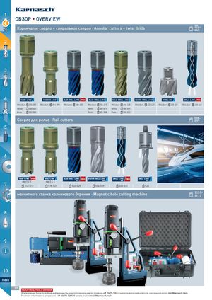 1 ОБЗОР • OVERVIEW Корончатое сверло + спиральное сверло · Annular cutters + twist drills 374-445 2 3 4 HARD-L I N E HARDOX-L I N E BLUE-DRILL LINE PRO BLUE-DRILL LINE GOLD-DRILL LINE SILVER-DRILL LINE MINI-L I N E DRILL-L I N E PRO Weldon 376-385 Weldon 394-399 Weldon 400-405 Weldon 406-415 Weldon 416-425 Weldon 432-437 Weldon 438-439 Weldon 440-443 Nitto 448-463 Nitto 464-479 Nitto 480-499 Fein 502-505 Fein 506-508 Fein 510-512 Сверло для рельс · Rail cutters 518-532 5 6 RAIL-L I N E PRO RAIL-L I N E BLUE-DRILL LINE PRO SILVER-DRILL LINE DRILL-L I N E PRO DRILL-L I N E 7 HM/T.C.T. HM/T.C.T. RAIL RAIL RAIL514–517518-521522-525526-529530-531RAIL532 NES магнитного станка колонкового бурения · Magnetic hole cutting machine 1151-1173 8 OIL 9 10 Index 370 INDUSTRIAL TOOLS DIVISION Для получения более подробной информации Вы можете позвонить нам по телефону +49 33675-7265-0 или отправить свой запрос по электронной почте: mail@karnasch.tools. For more informations please call +49 33675-7265-0 send a mail to mail@karnasch.tools. MACHI