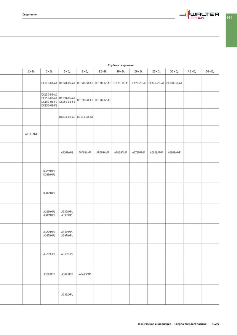 Сверление B1 Глубина сверления 2 × Dc 3 × Dc 5 × Dc 8 × Dc 12 × Dc 16 × Dc 20 × Dc 25 × Dc 30 × Dc 40 × Dc 50 × Dc DC170-03-A1 DC170-05-A1 DC170-08-A1 DC170-12-A1 DC170-16-A1 DC170-20-A1 DC170-25-A1 DC170-30-A1 DC150-03-A0 DC150-03-A1 DC150-05-A1 DC150-08-A1 DC150-12-A1 DC150-03-F0 DC150-05-F1 DC150-03-F1 DB133-05-A0 DB133-08-A0 A6181AML A3389AML A6489AMP A6589AMP A6689AMP A6789AMP A6889AMP A6989AMP K3299XPL K3899XPL K3879XPL A3299XPL A3399XPL A3899XPL A3999XPL A3279XPL A3379XPL A3879XPL A3979XPL A3289DPL A3389DPL A3293TTP A3393TTP A6493TTP A3382XPL Техническая информация – Свёрла твердосплавные B 435