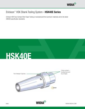 Erickson™ HSK Shank Tooling System • HSK40E Series Erickson HSK Face Contact Short Taper Tooling is manufactured from premium materials and to the latest DIN/ISO specification standards. HSK40E 2-face contact — locating face and Tool changer V-groove. top of taper. B162 WWW.WIDIA.COM
