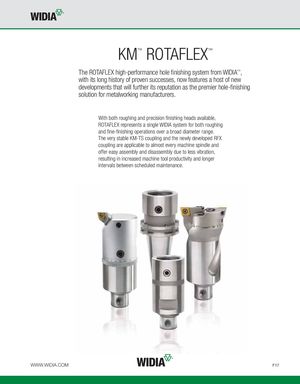 KM™ ROTAFLEX™ The ROTAFLEX high-performance hole finishing system from WIDIA™, with its long history of proven successes, now features a host of new developments that will further its reputation as the premier hole-finishing solution for metalworking manufacturers. With both roughing and precision finishing heads available, ROTAFLEX represents a single WIDIA system for both roughing and fine-finishing operations over a broad diameter range. The very stable KM-TS coupling and the newly developed RFX coupling are applicable to almost every machine spindle and offer easy assembly and disassembly due to less vibration, resulting in increased machine tool productivity and longer intervals between scheduled maintenance. WWW.WIDIA.COM F17
