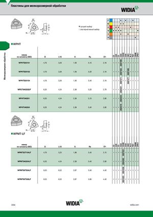 Мелкоразмерная обработка C2––––––C2–––– C25––––––C25–––– C3––––––C3–––– CG5282749628274832827471282433128243442824316CG5–––– CG55––––––CG552827521282436228210362821023 CG6––––––CG6–––– CM1–28274902827477–––CM1–––– ALO––––––ALO–––– TN7––––––TN7–––– CBN6––––––CBN6–––– CPD1––––––CPD1–––– Пластины для мелкоразмерной обработки 80˚ P v j v j j v M j j j v v j j j j v лучший выбор K j v v j j j j v j j альтернативный выбор N v v v v j j j v S j j j v j v j H v nnWPHT номер по каталогу (ISO) D L10 S Rε D1 WPHTS30101 4,76 3,26 1,59 0,10 2,16 WPHTS30102 4,76 3,26 1,59 0,20 2,16 WPHTS30104 4,76 3,26 1,59 0,40 2,16 WPGT040202UF 6,35 4,34 2,38 0,20 2,79 WPHT040201 6,35 4,34 2,38 0,10 2,80 WPHT040204 6,35 4,34 2,38 0,40 2,80 80˚ nnWPMT-LF номер по каталогу (ISO) D L10 S Rε D1 WPMTS3T104LF 4,76 3,25 1,98 0,40 2,15 WPMT040204LF 6,35 4,34 2,38 0,40 2,90 WPMT06T304LF 9,53 6,52 3,97 0,40 4,40 WPMT06T308LF 9,53 6,52 3,97 0,80 4,40 D54 widia.com